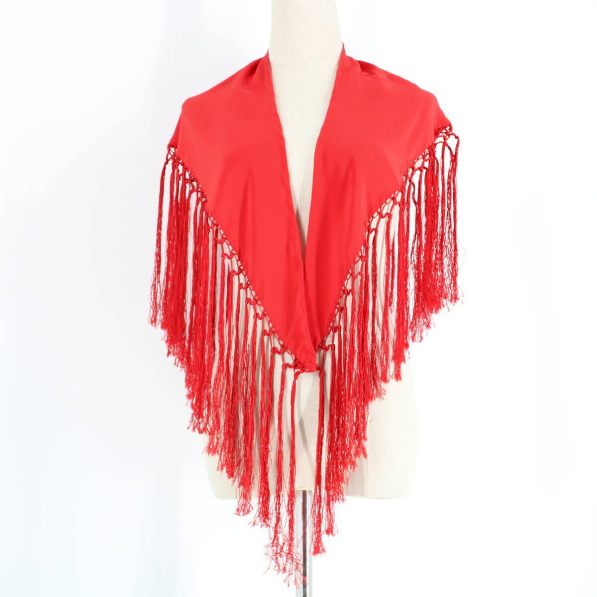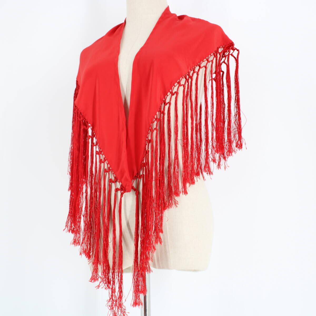 【美品 フラメンコ衣装】レッド シージョ 赤 無地 カーブ フレコ 軽い 小物 装飾 飾り フリンジ ダンス用 軽い 小道具 飾り