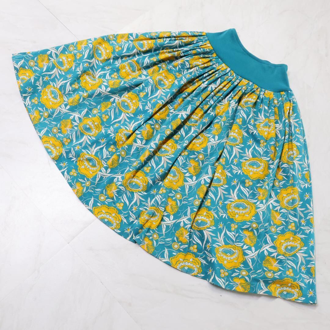 【フォークダンス衣装】ブルーグリーン NORMA KAMALI スカート 花柄 黄 青緑 白 イエロー ホワイト 鮮やか 華やか かわいい