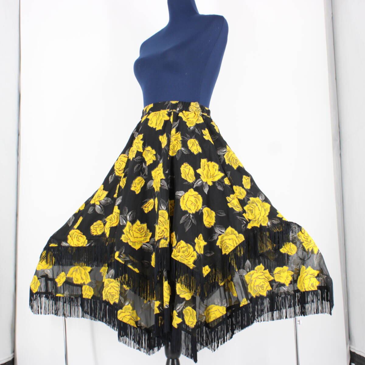 #社交ダンス #ダンス衣装 #スカート #ファッション #ブラック #イエロー #シルバー #花柄 #フリンジ #Mサイズ #カジュアル #パーティー #オシャレ #エレガント #日本製 #ダンス #ストレッチ #イベント #ダイエット #ENUTSU