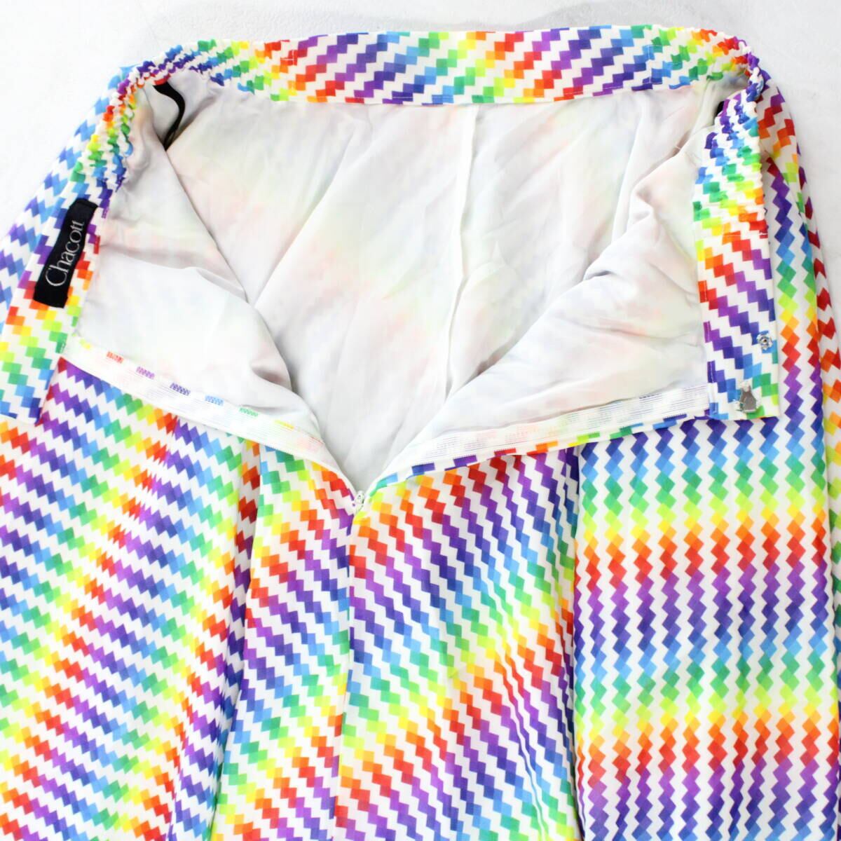【美品 日本製 社交ダンス衣装】ホワイト Chacott チャコット スカート カラフル 虹色 レインボー 赤 黄色 レッスン 練習着