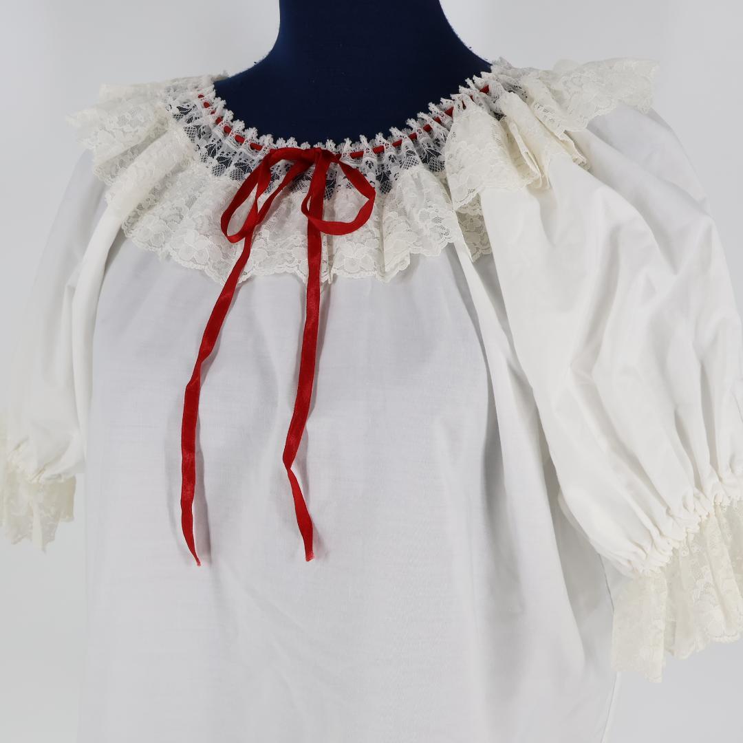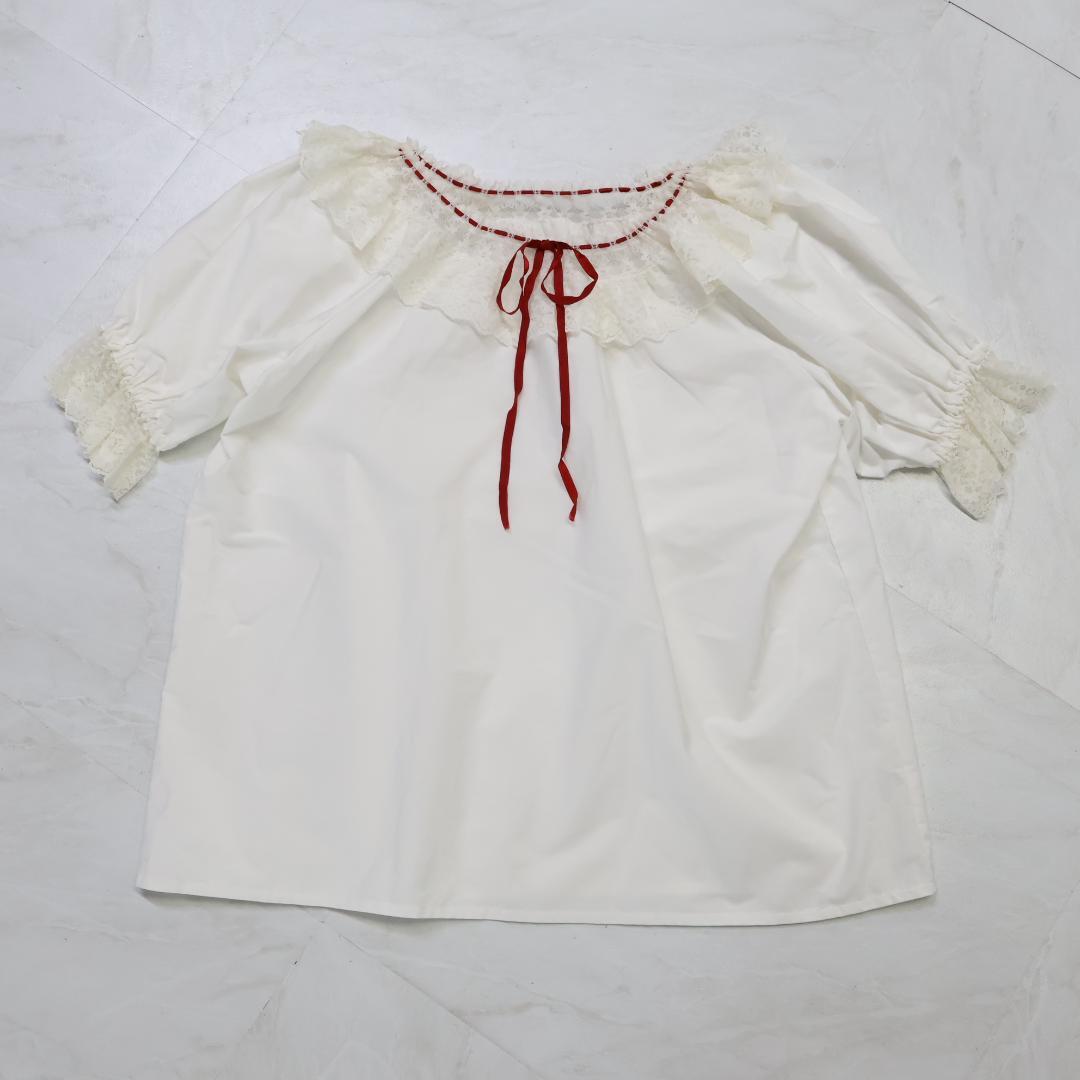 【日本製 フォークダンス衣装】ホワイト Chacott チャコット トップス ブラウス 赤 白 レッド リボン レース 花柄 かわいい