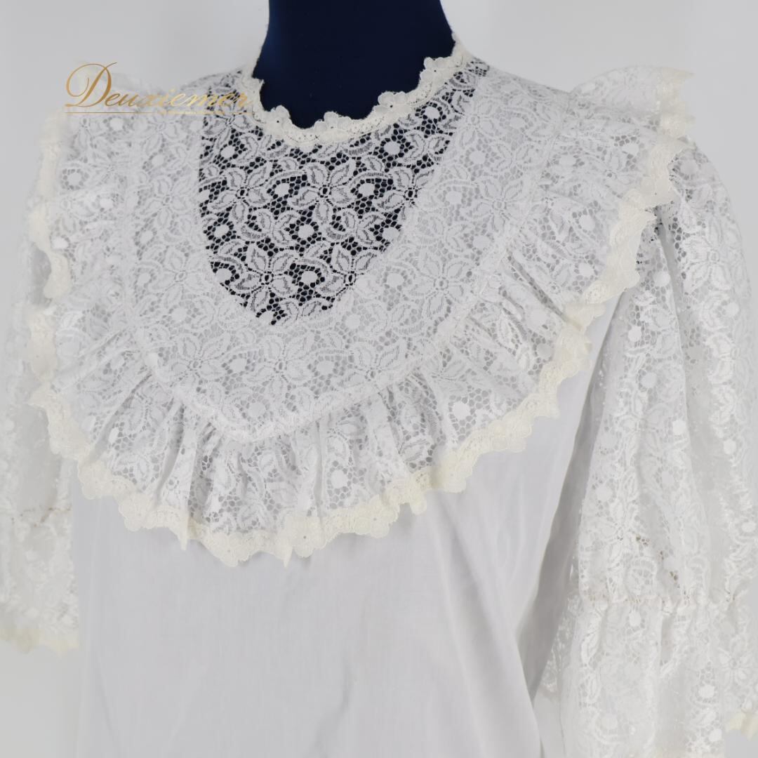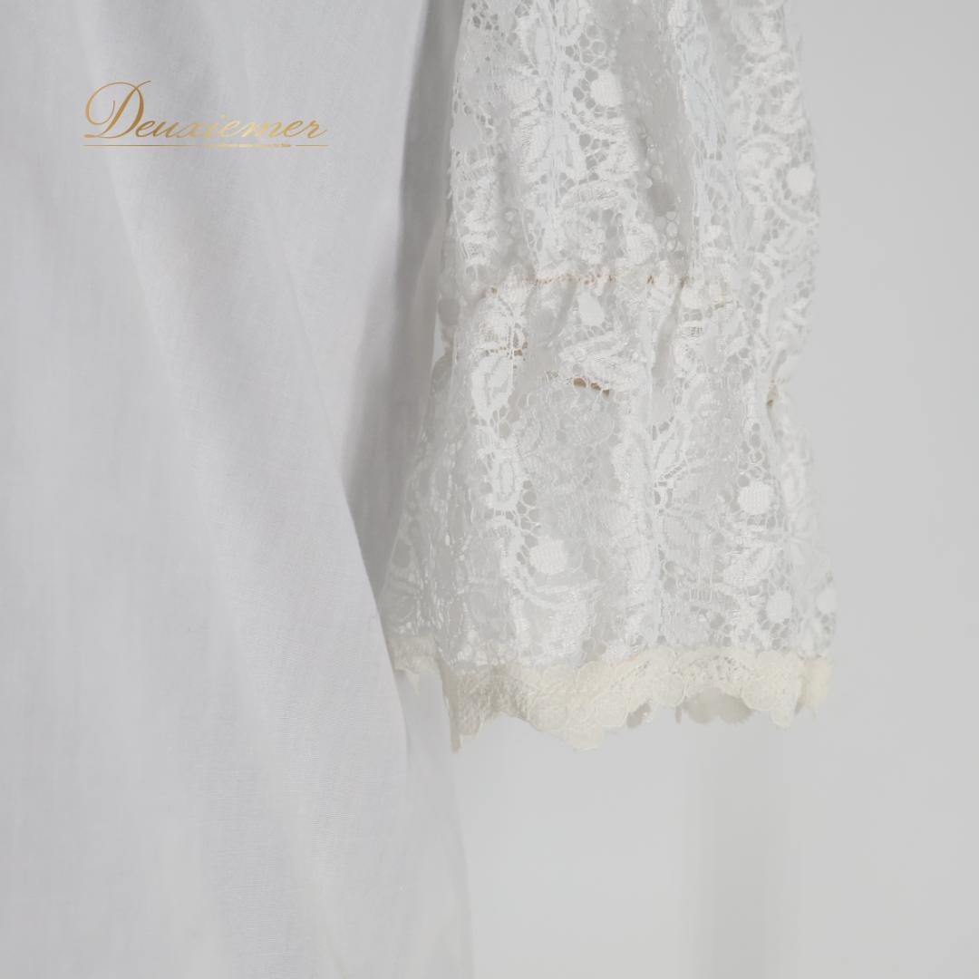 【フォークダンス衣装】ホワイト SAKAI サカイ トップス ブラウス レース 花柄 七分袖 白 フリル シンプル 爽やか かわいい