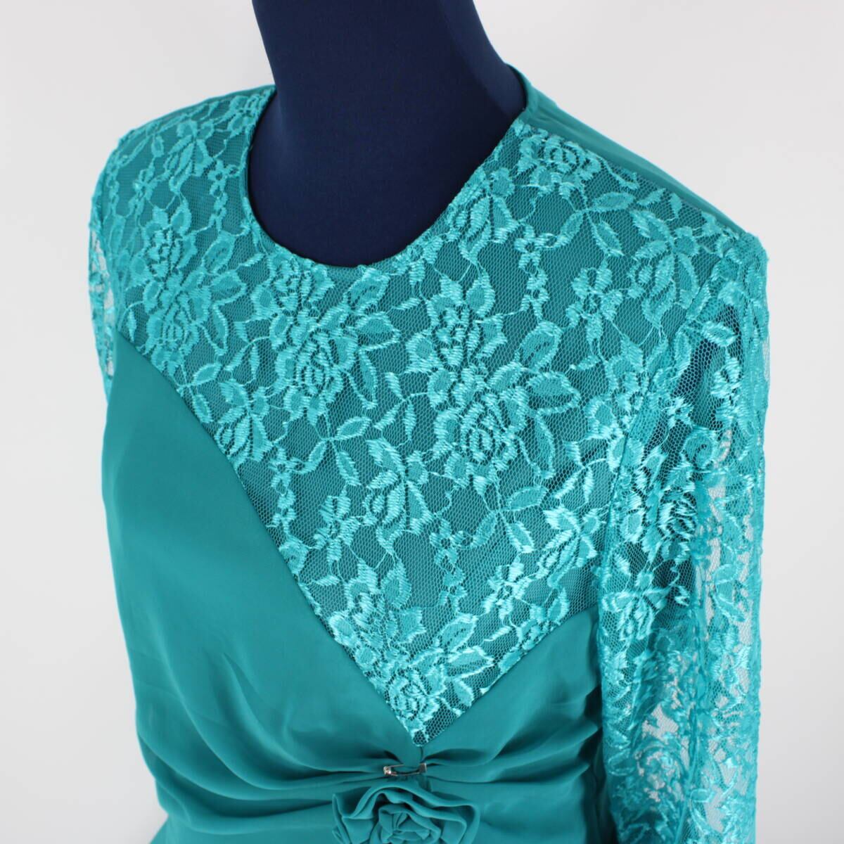 【美品 社交ダンス衣装】ワンピース ドレス A vivare Mサイズ 青みグリーン 青緑 緑 グリーン レース 花柄 かわいい 可愛い