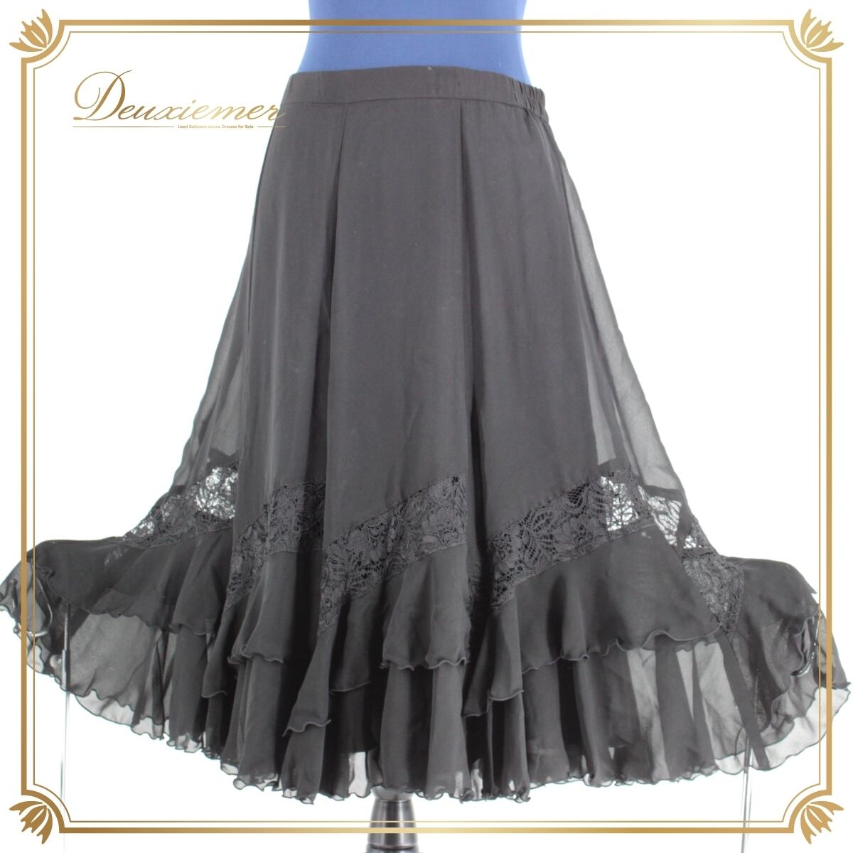 【美品 社交ダンス衣装】スカート レッスンウェア 練習着 PAPILLON パピヨン 黒 ブラック 透け感 シースルー シンプル レース