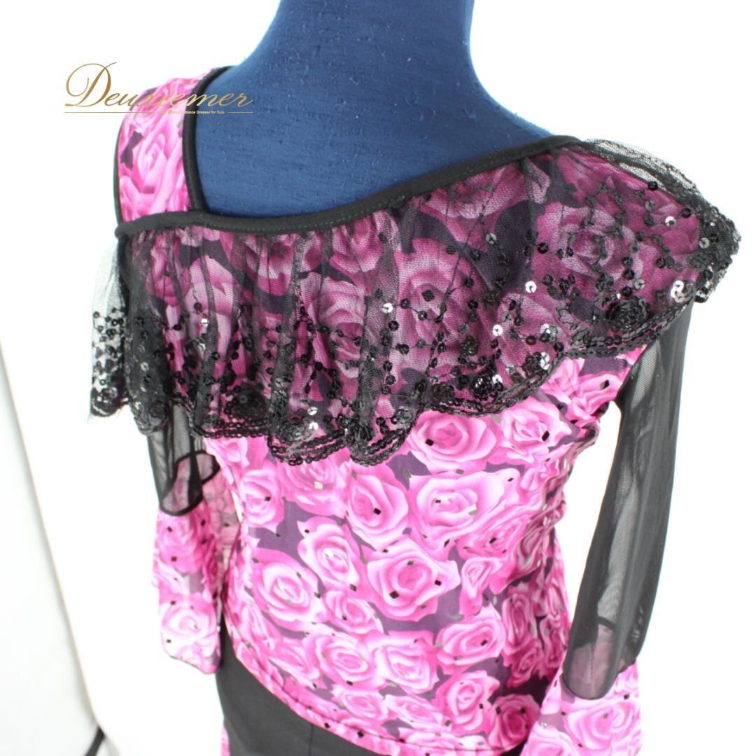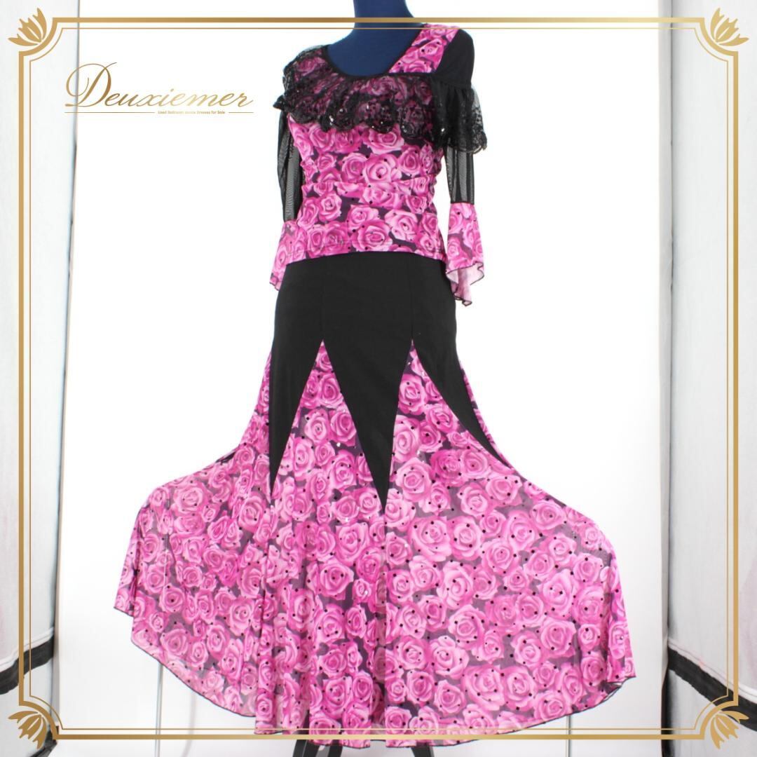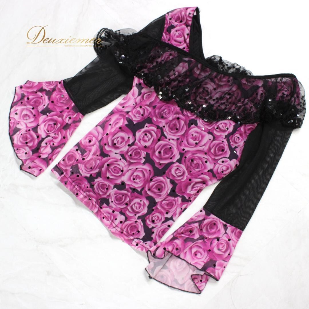 【社交ダンス衣装】上下セット ICHIOKU イチオク 黒 紫 ブラック パープル 花柄 薔薇 バラ スパンコール 華やか 上品 かわいい