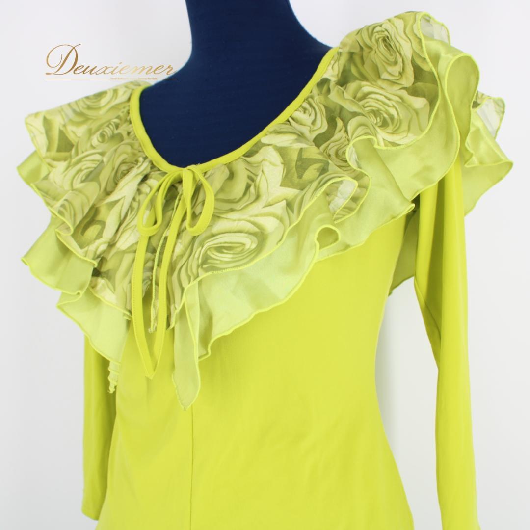 【社交ダンス衣装】グリーン create-sun クリエイトサン 上下セット ツーピース セットアップ 緑 抹茶色 レース 花柄 パーティ