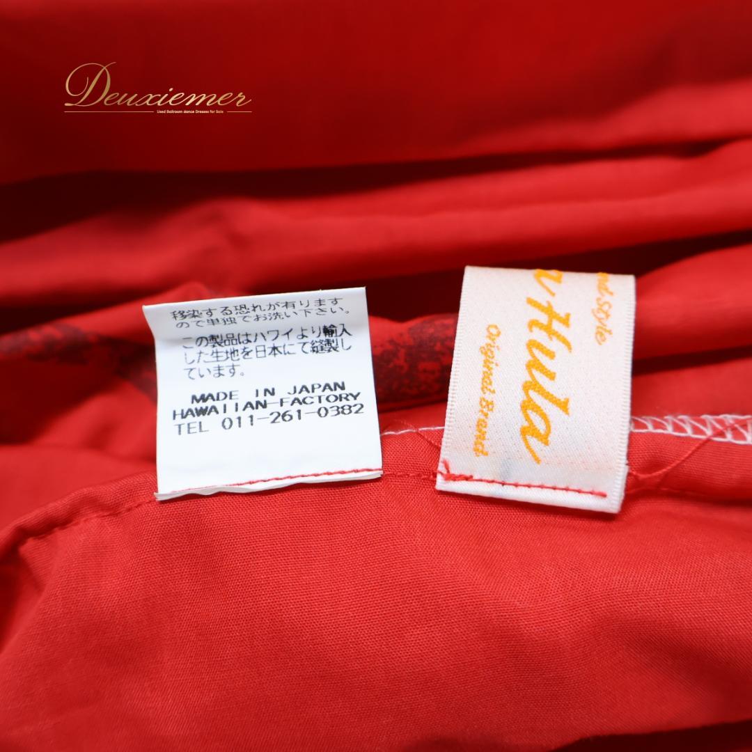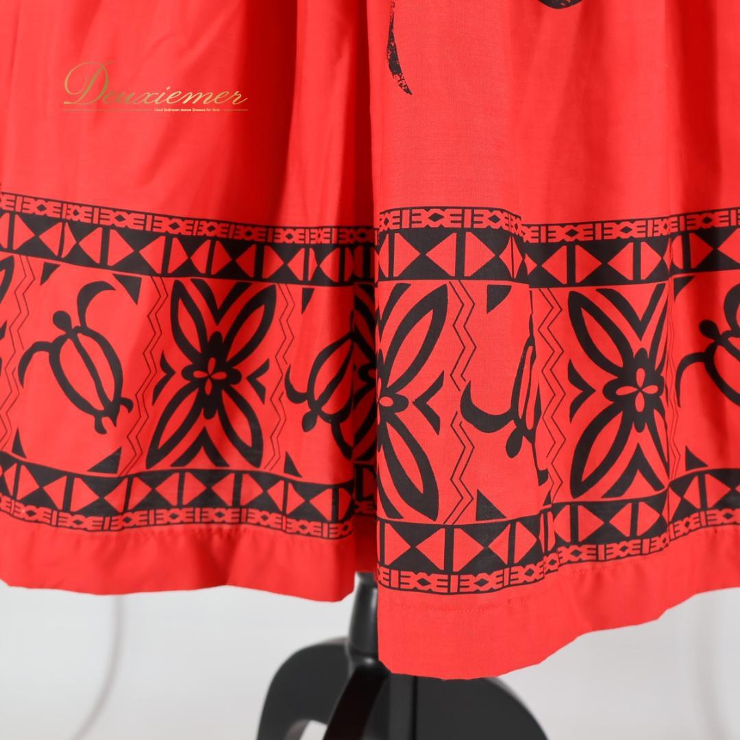【日本製 フラダンス衣装】レッド Mea Hula パウスカート ホヌ柄 黒 赤 ブラック 亀 鮮やか 花柄 ハワイアン アロハ かわいい