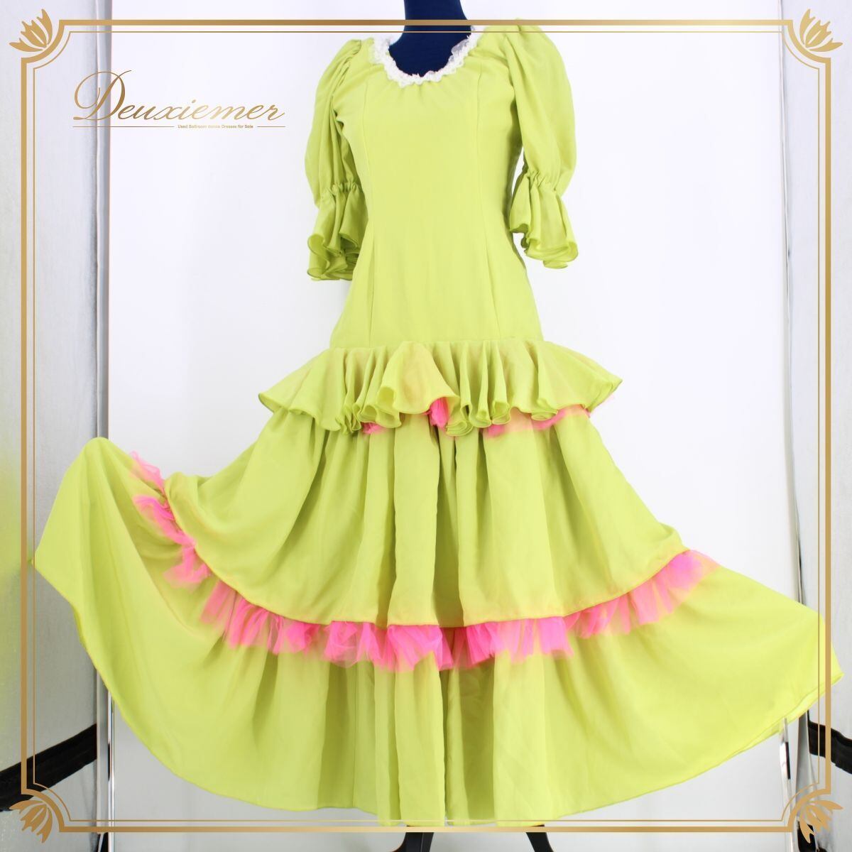 #フラメンコ衣装 #ワンピース #ドレス #レース #黄緑 #女性服 #ファッション #カラフル #スタイル #セクシー #おしゃれ #ダンス衣装 #イベント #パーティー #特別な日 #着用感 #ファスナー #レディース #ENUTSU