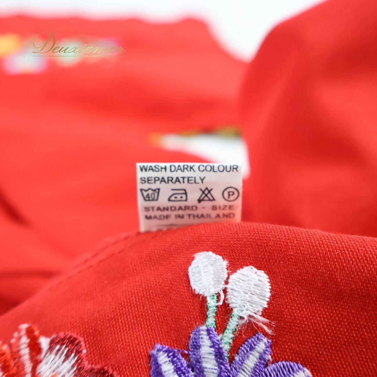 #フォークダンス衣装 #LOUIS #レッドベスト #花柄刺繍 #カラフル刺繍 #金レース #華やかスタイル #鮮やかカラー #刺繍ベスト #リボンデザイン #紐付きベスト #赤アイテム #ホワイトアクセント #イエローポイント #紫ディテール #水色アクセント #民族調ファッション #クラシカルファッション #ダンス衣装 #ダンスコスチューム #ステージ衣装 #古着 #中古 #ENUTSU