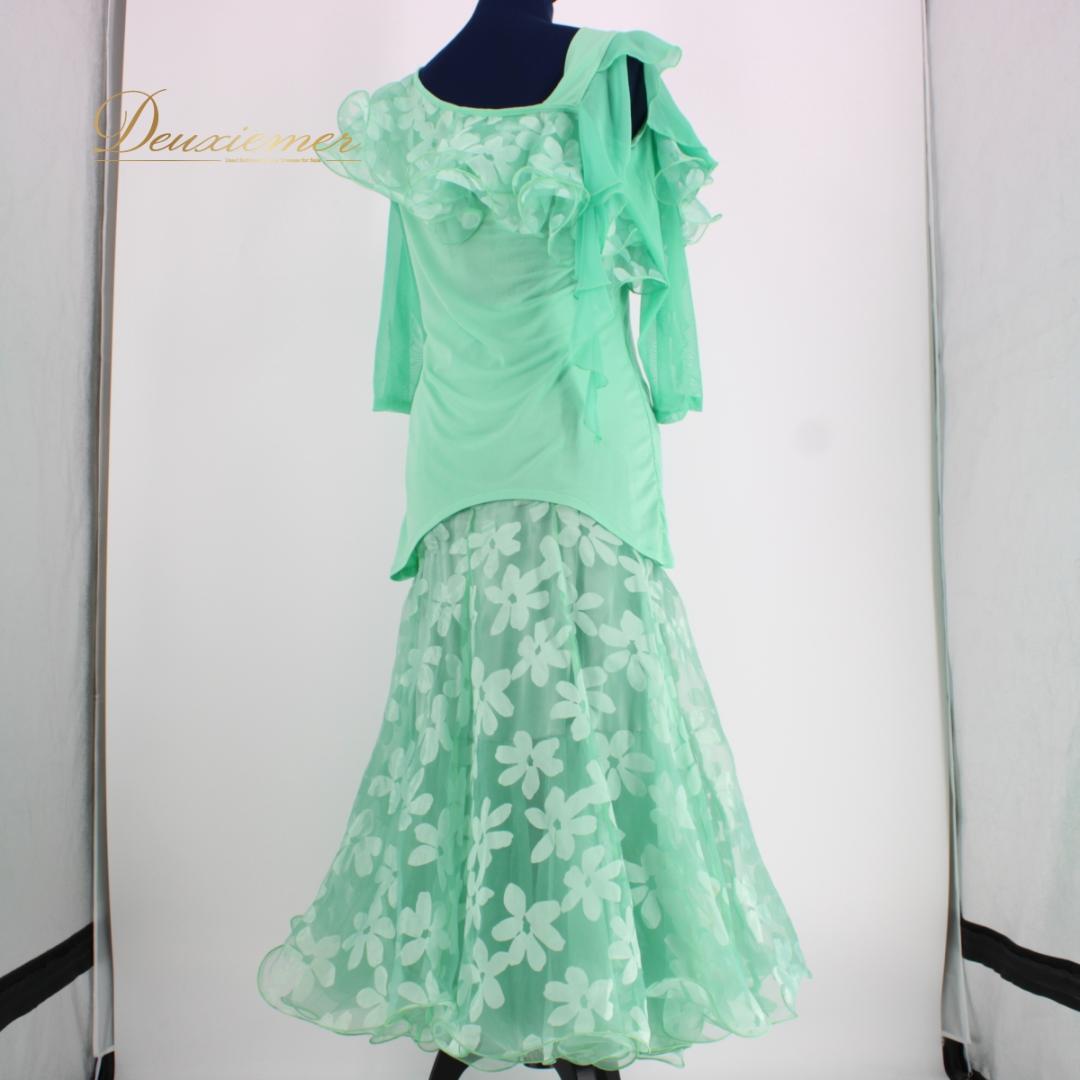 #社交ダンス #ダンス衣装 #ミントグリーン #花柄 #ダンスファッション #ダンススタイル #ダンス用品 #女性用衣装 #ダンスウェア #ダンサー #イベント用衣装 #上着セット #スカート #グレース #ダンス好き #パフォーマンス #楽しいダンス #おしゃれ #チュニック #ENUTSU