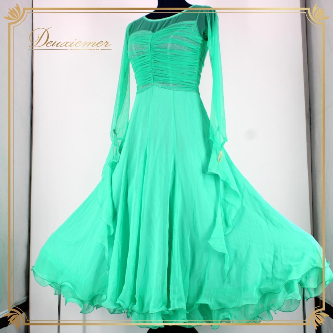 【美品 日本製社交ダンス衣装】ワンピース ドレス Sanline サンリーヌ ミントグリーン 青緑 無地 シンプル キラキラ フロート