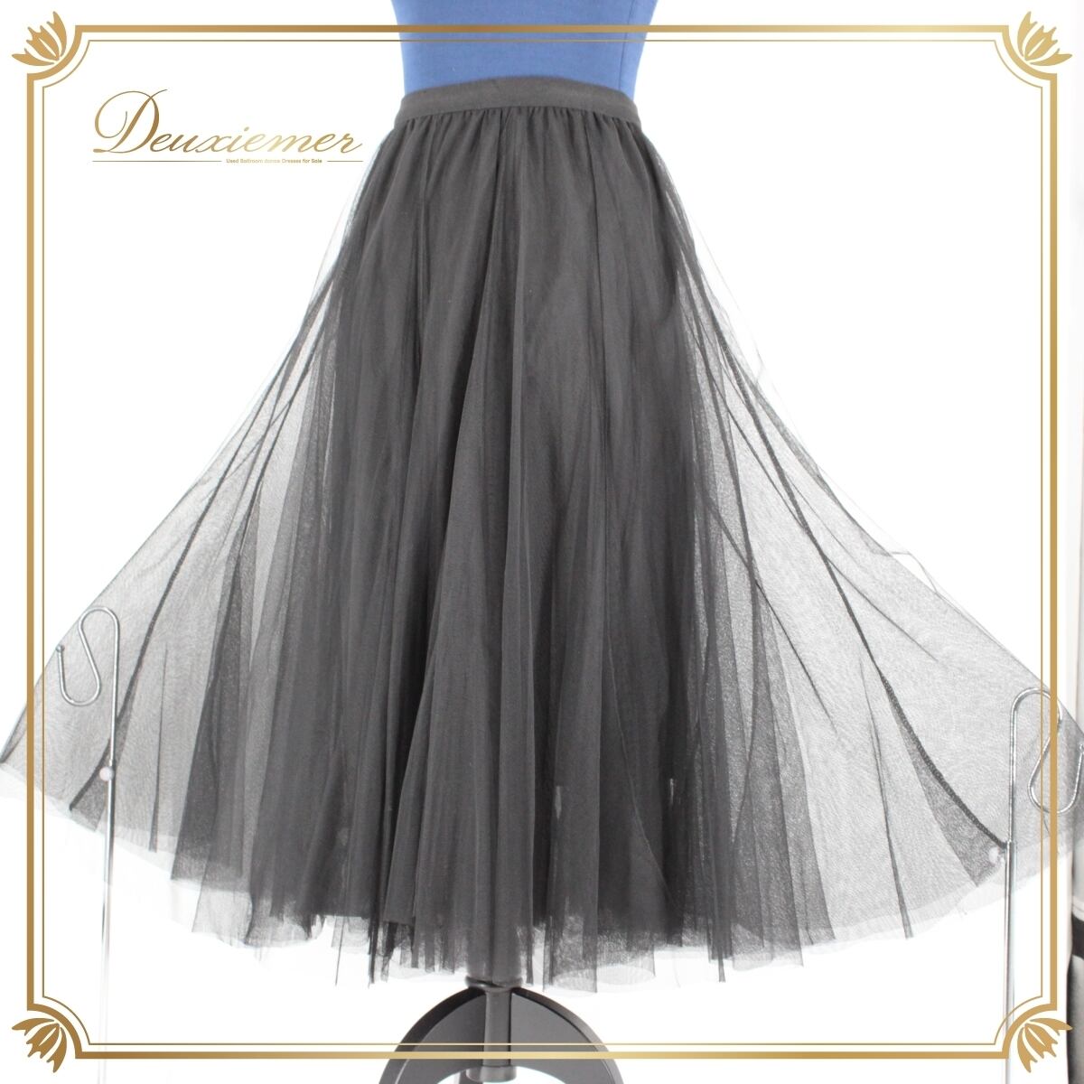 【美品 社交ダンス衣装】スカート レッスンウェア 練習着 GRL 黒 ブラック 無地 シンプル シースルー 透け感 Mサイズ 上品