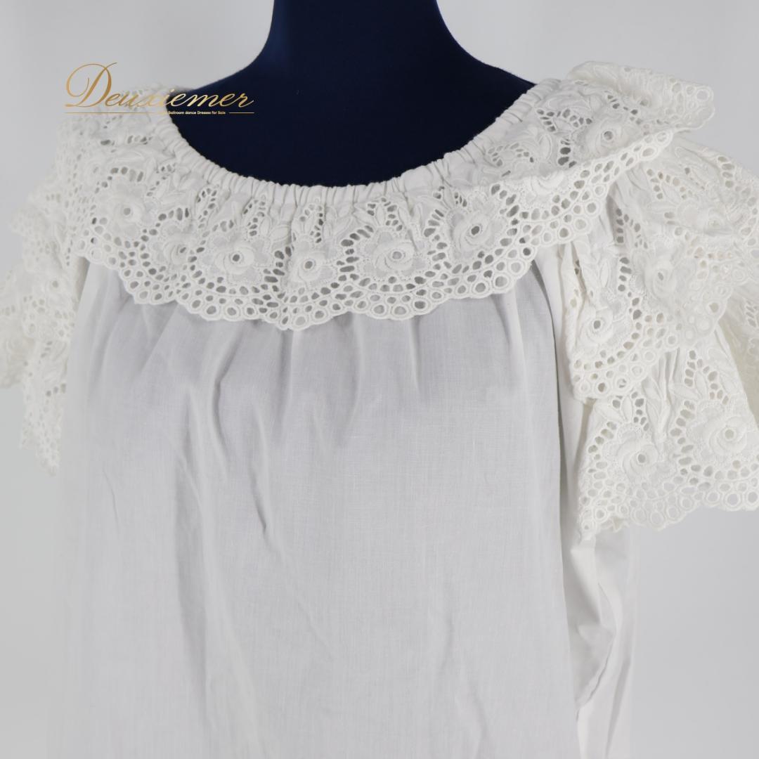 【フォークダンス衣装】ホワイト AVIVARE アビバーレ トップス ブラウス 白 レース フリル 花 シンプル 爽やか 刺繍 かわいい