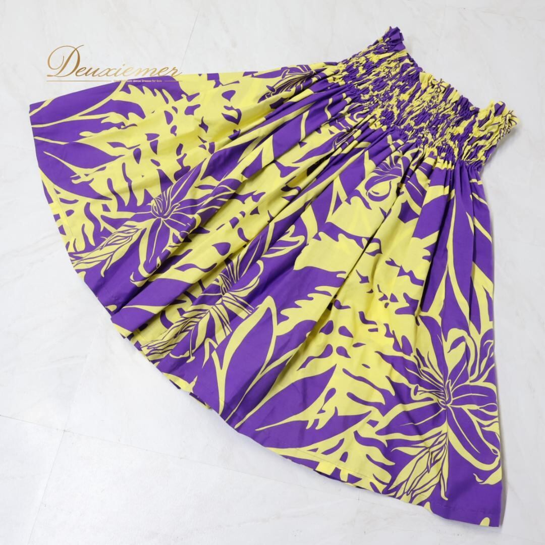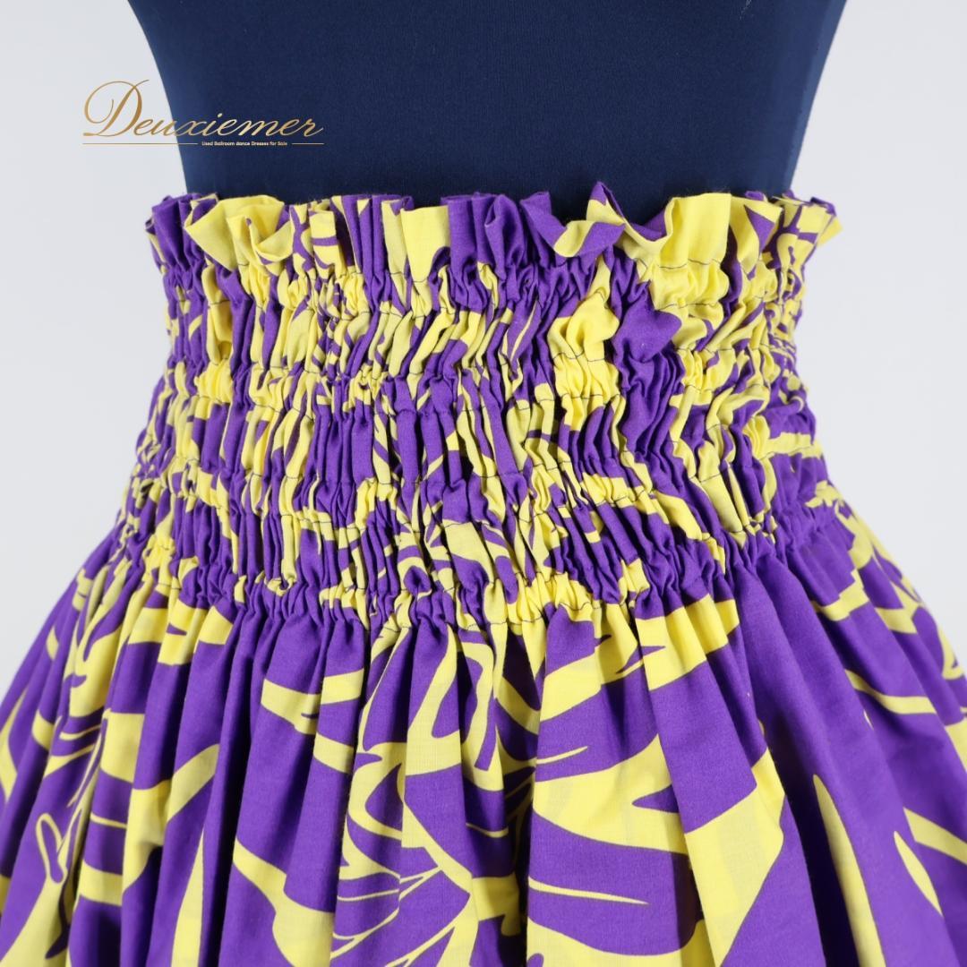 【日本製 フラダンス衣装】パープル セキノレーシングスポーツ パウスカート 黄 紫 イエロー 花柄 鮮やか ハワイアン アロハ
