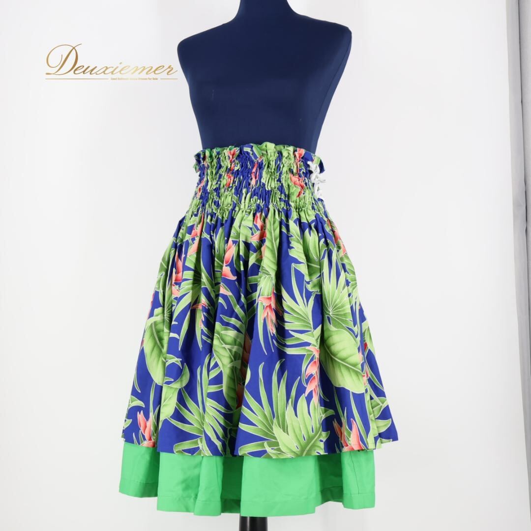 【美品 日本製 フラダンス衣装】ブルー エムエムジェイ パウスカート 青 黄緑 赤 リバーシブル 2way 爽やか レッド かわいい