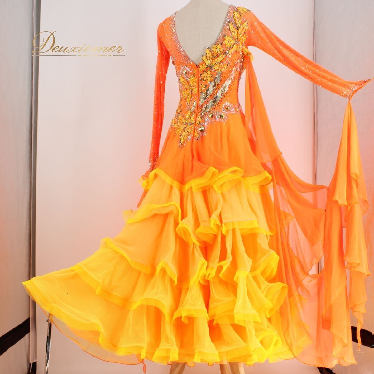 #社交ダンス #ダンス衣装 #ワンピース #ドレス #フリル #蛍光オレンジ #ダンスファッション #パーティードレス #オーダー #ウエスト #おしゃれ #スタイル #ダンスパフォーマンス #衣装 #女性用 #ダンス好き #フリルスカート #シンプル #フォーマル #ENUTSU