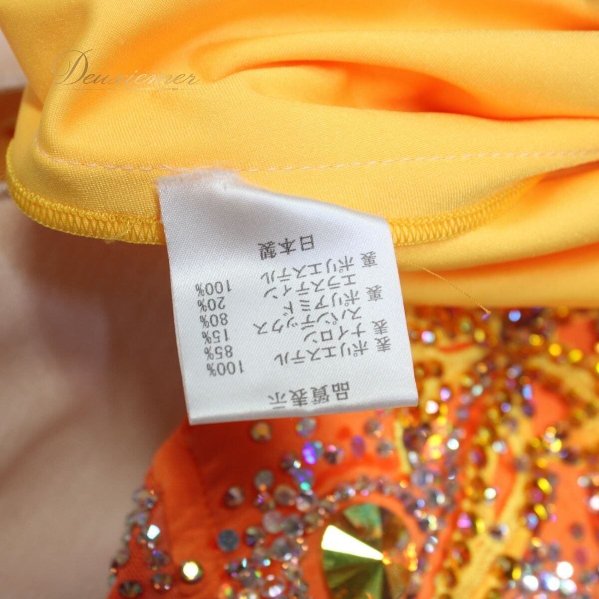 【日本製 社交ダンス衣装】オレンジ ワンピース ドレス フリル レース フロート ラインストーン フロート デモ 競技用 蛍光