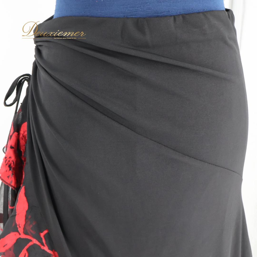 【社交ダンス衣装】ブラック create-sun クリエイトサン スカート 黒 赤 フリル レース 花柄 伸縮 パーティ 発表会 レッド