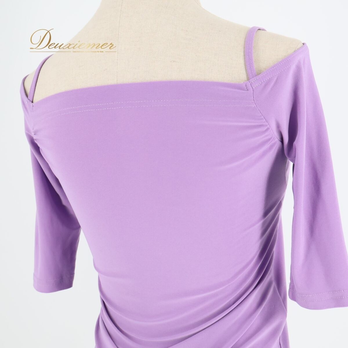 【美品 社交ダンス衣装】パープル create-sun クリエイトサン ブラウス トップス 紫 伸縮 ラベンダー レッスン 練習着 無地