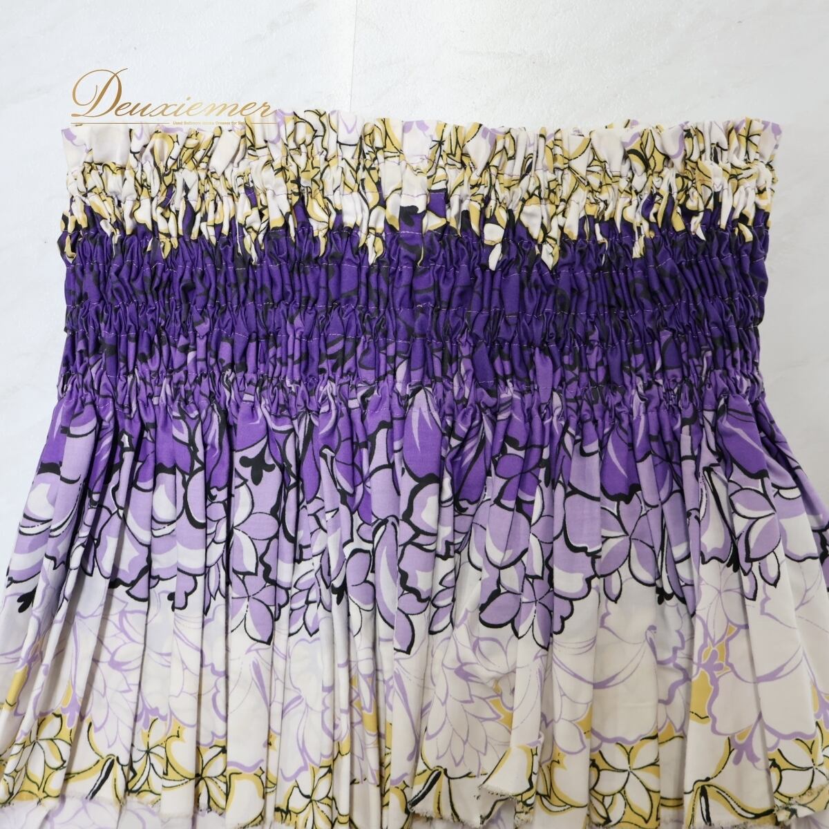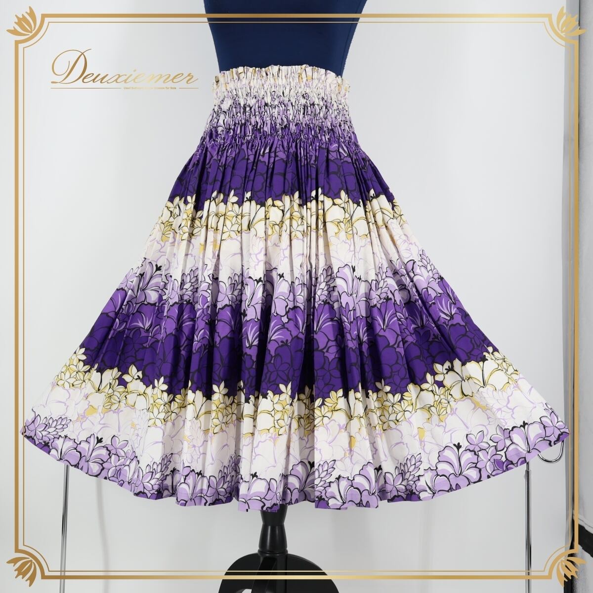 #フラダンス #パウスカート #衣装 #プルメリア #ダンスウェア #ハワイアン #パープル #ホワイト #ウエストゴム #華やか #踊り #ダンス #実測サイズ #着やすい #女性用 #フラ #楽しい #イベント #スポーツ #ENUTSU