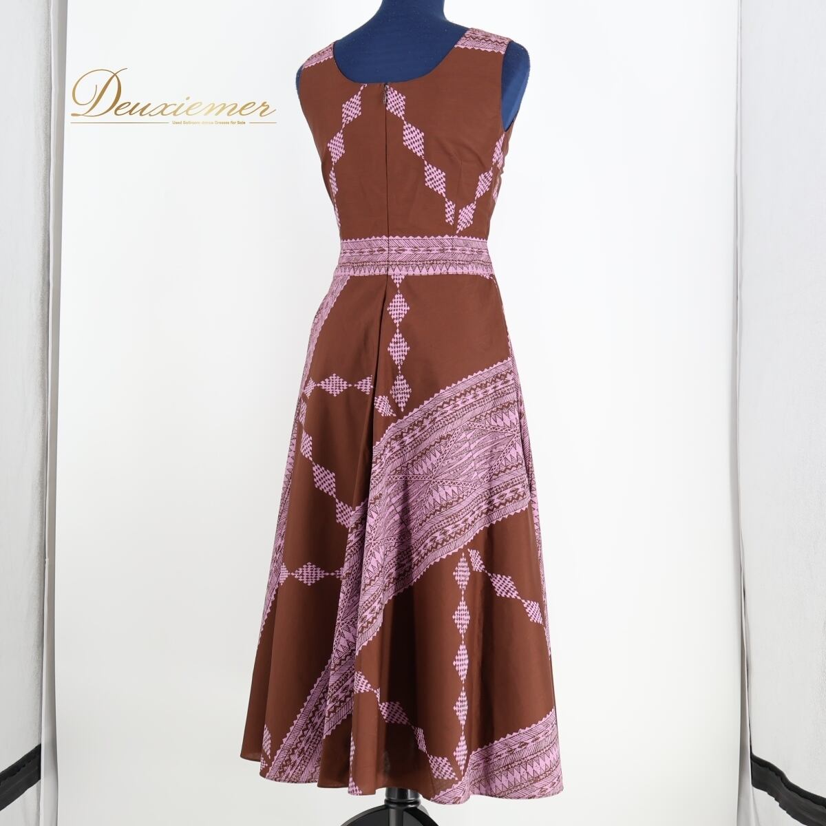 【美品 日本製 フラダンス衣装】ブラウン kukui ククイ ワンピース ドレス 茶 ピンク ノースリーブ 袖なし ハワイアン 可愛い