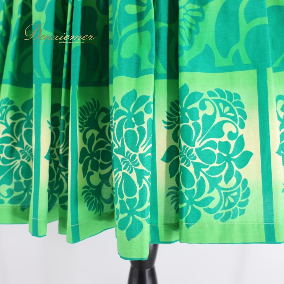 【日本製 フラダンス衣装】ライトグリーン セキノレーシングスポーツ パウスカート 黄緑 緑 グリーン 爽やか 花柄 かわいい