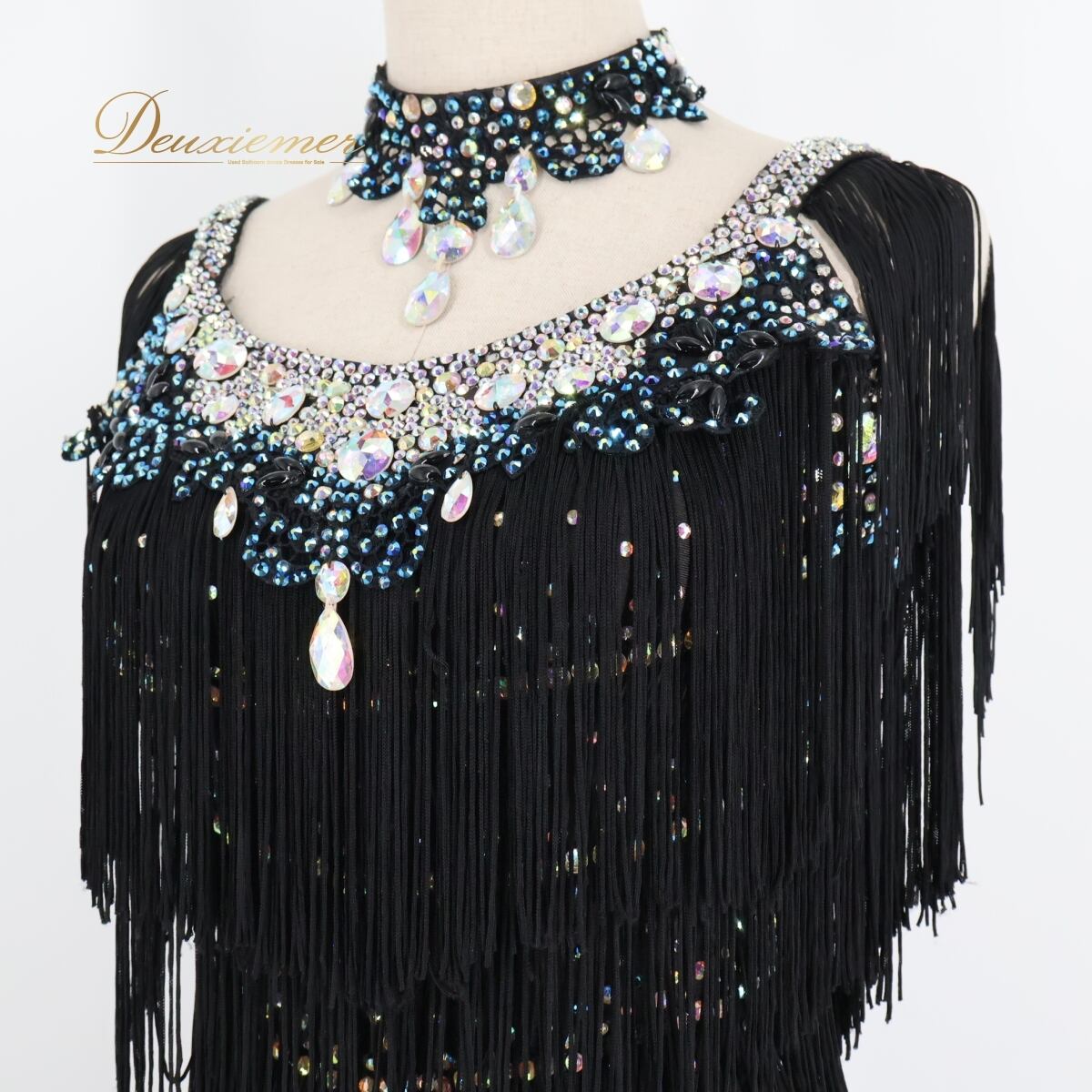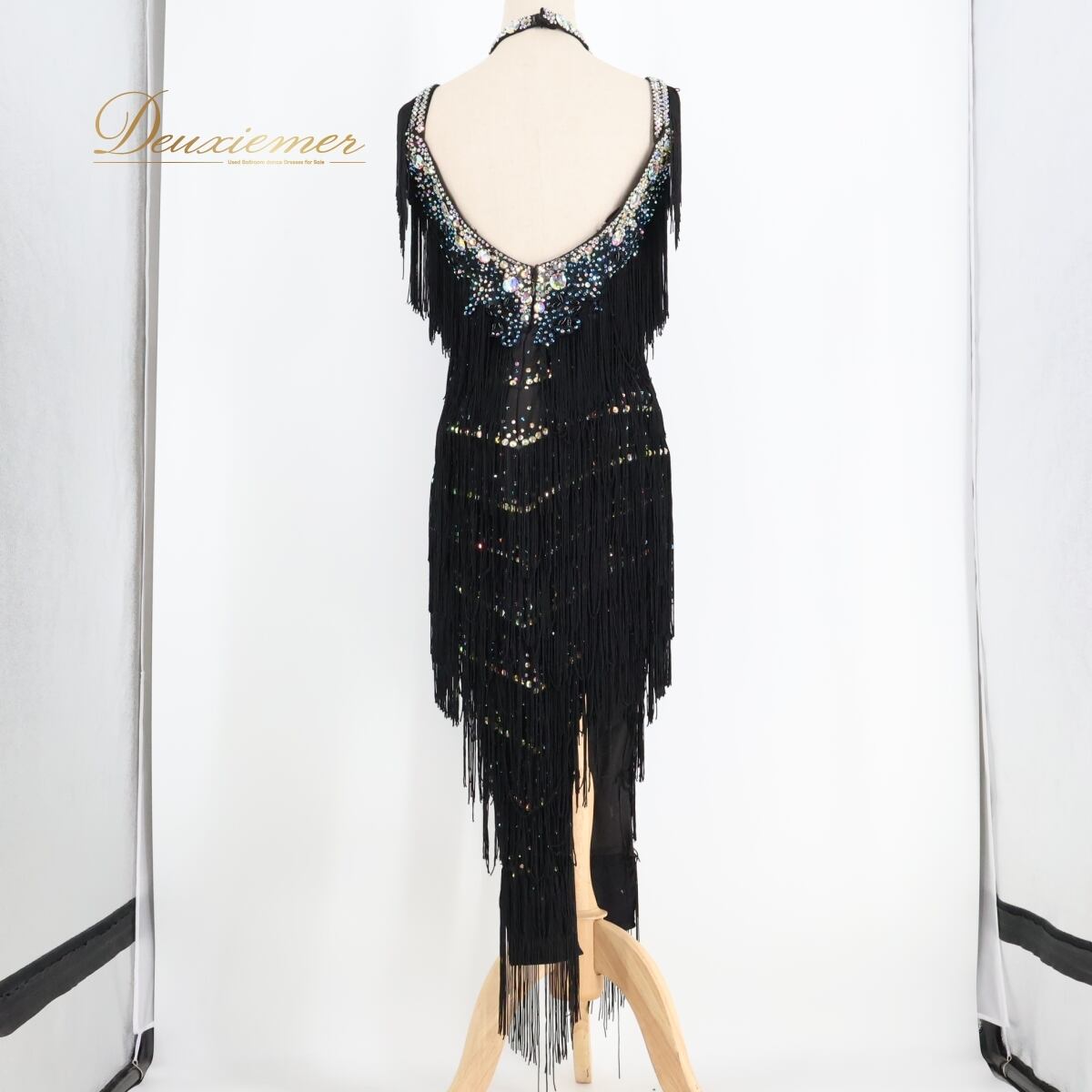 #社交ダンス #ダンスドレス #ラテンドレス #フリンジ #黒ドレス #デモ用衣装 #競技用衣装 #パーティ衣装 #エレガント #ダンス衣装 #発表会 #スタイル #ファッション #パフォーマンス #揺れる #胸パッド #レオタード #背面ファスナー #伸縮性 #ENUTSU