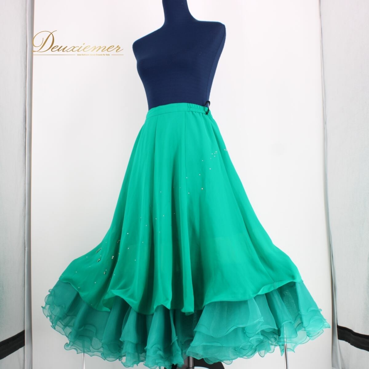 #社交ダンス #二重スカート #グリーン #ラインストーン #日本製 #エレガントスタイル #華やか #ダンスファッション #ステージ映え #フレアスカート #ラテンダンス #ダンス女子 #フォーマル #大人のダンス #ミディ丈 #クラシカル #演奏会衣装 #ダンス衣装 #ダンスコスチューム #ステージ衣装 #古着 #中古 #ENUTSU