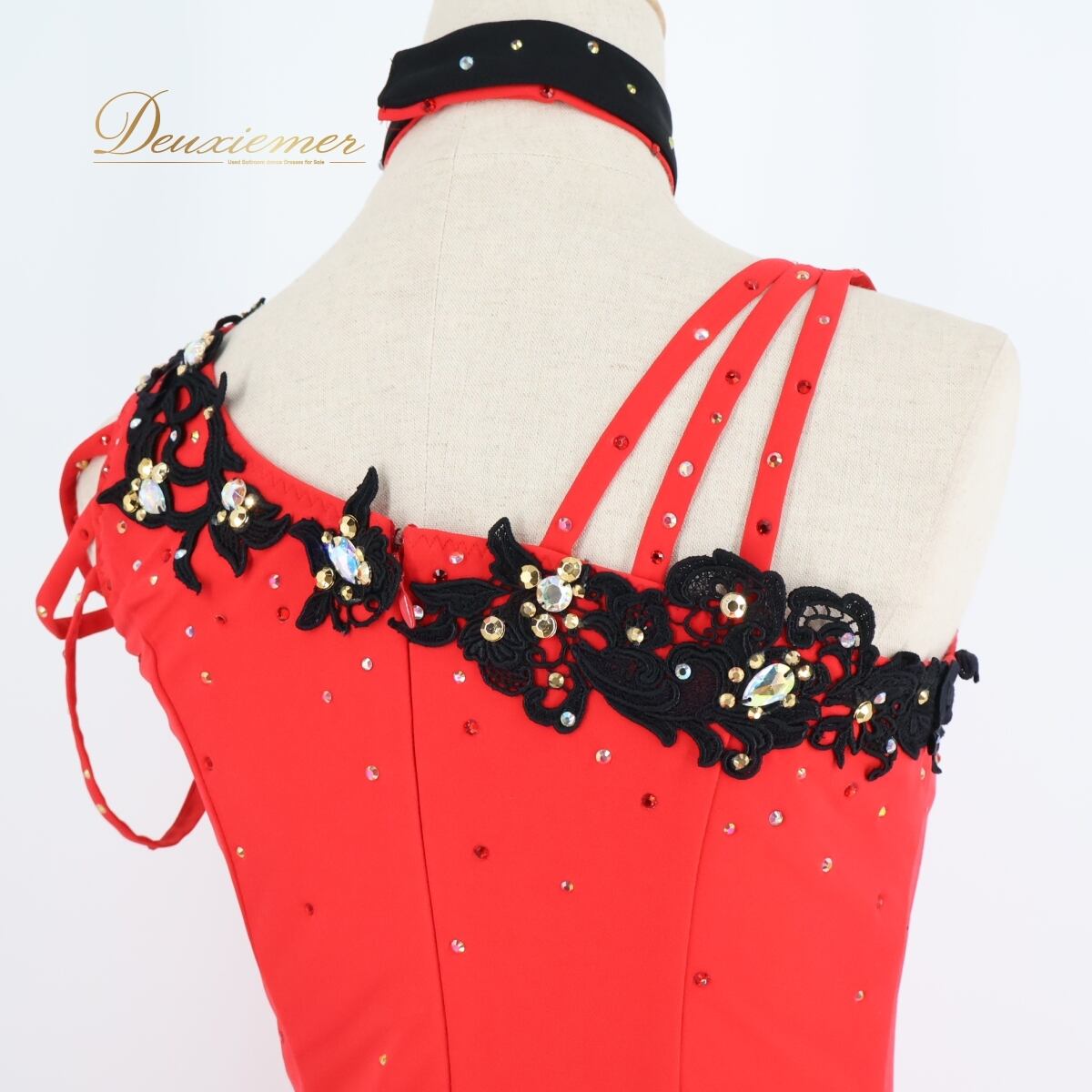 【美品 日本製 社交ダンス衣装】レッド in the MOOD インザムード ラテン ドレス ワンピース 赤 黒 ブラック デモ 競技用