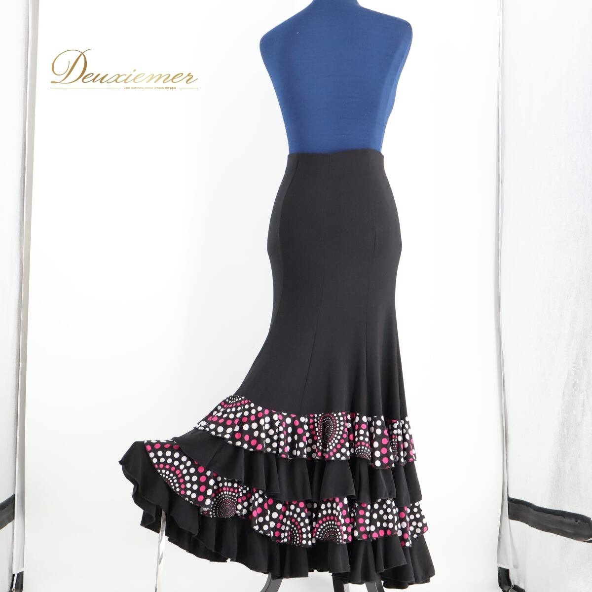 【フラメンコ衣装】ブラック ファルダ スカート ボランテ フリル 黒 ピンク 水玉 ドット 白 ホワイト 伸縮 レッスン 重い
