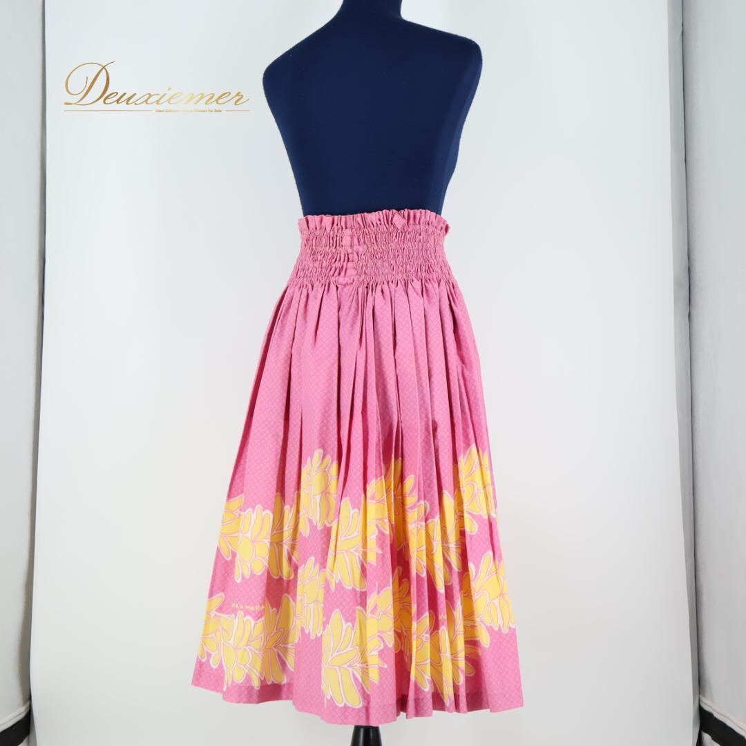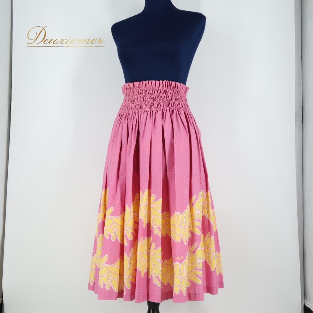 【日本製 フラダンス衣装】ピンク MMJ エムエムジェイ パウスカート 黄 イエロー マイレ柄 花柄 明るい ハワイアン かわいい