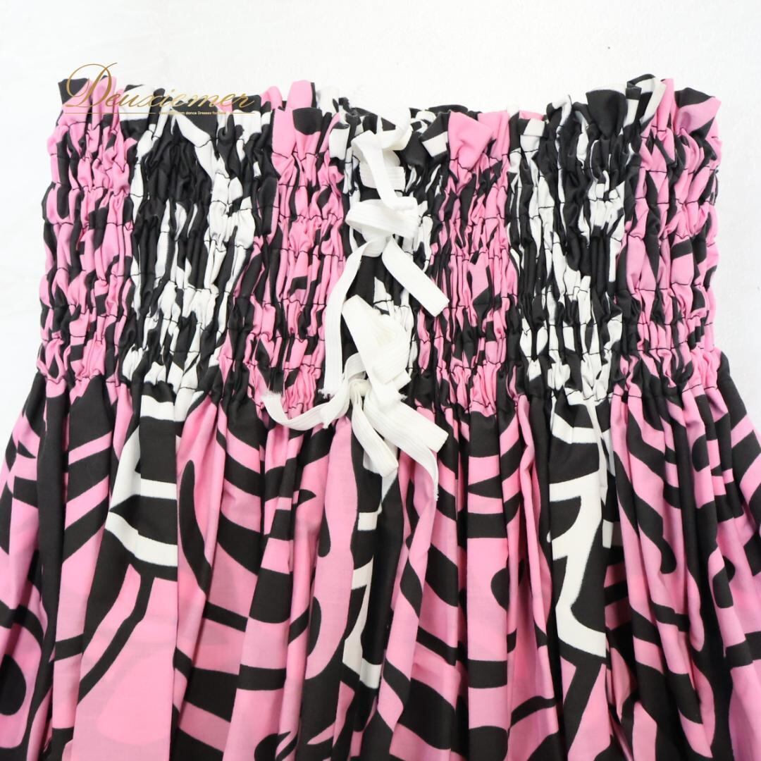 【フラダンス衣装】ブラック パウスカート 白 黒 ピンク モンステラ柄 プルメリア柄 マイレ柄 ホワイト 花柄 鮮やか かわいい