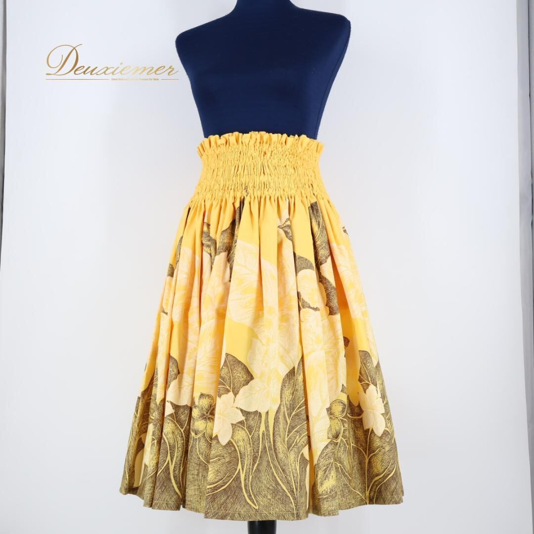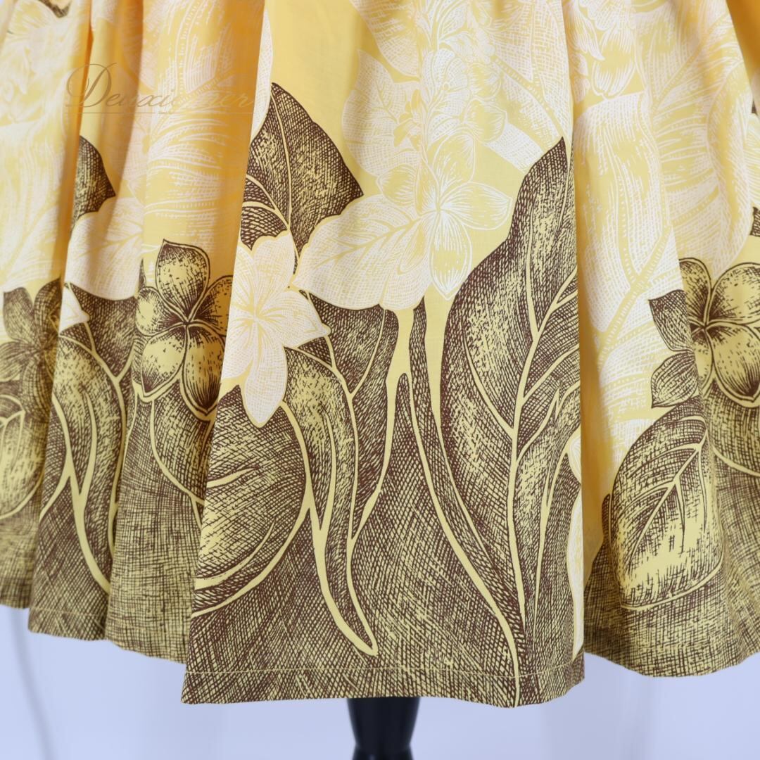 【美品 フラダンス衣装】イエロー パウスカート 白 茶 黄 ホワイト ブラウン プルメリア柄 花柄 爽やか 明るい かわいい ②