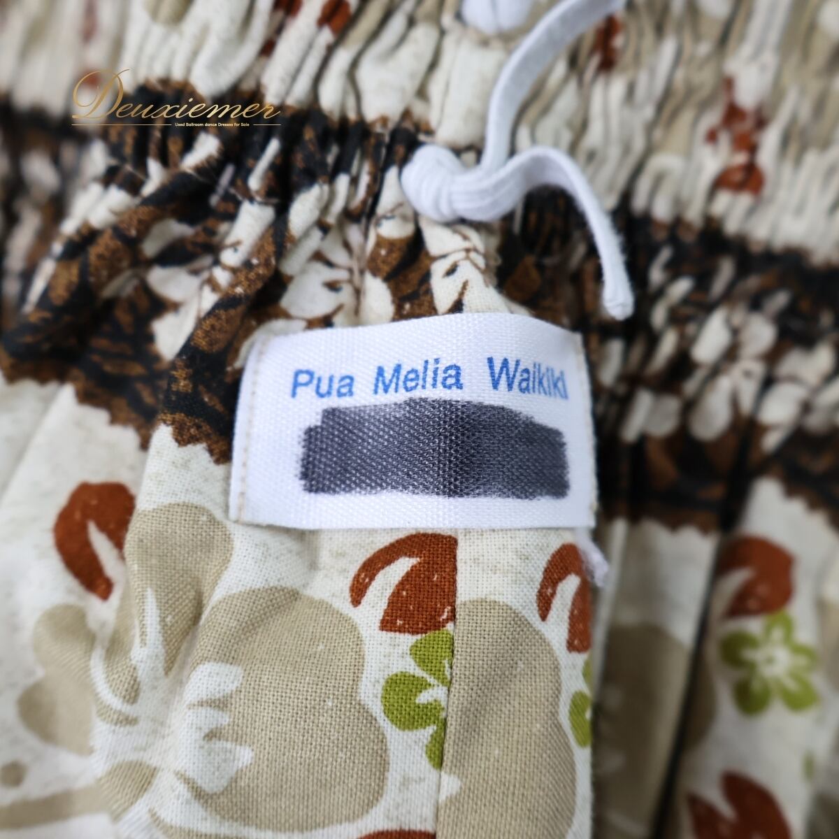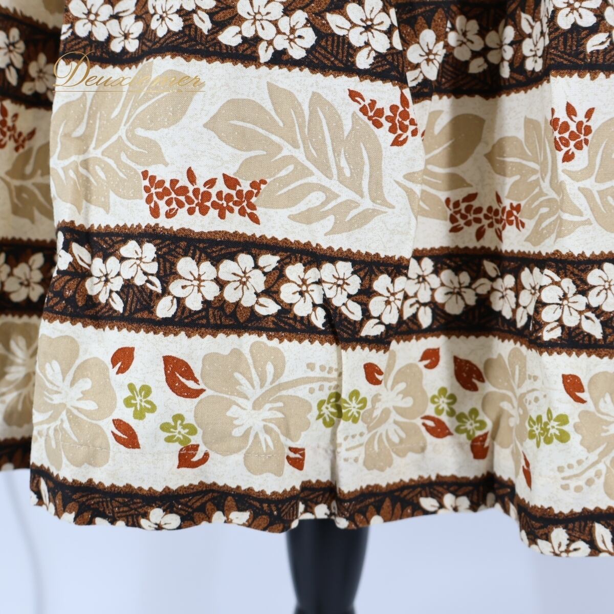 【フラダンス衣装】ベージュ Pua Melia Waikiki パウスカート ハイビスカス柄 花柄 茶 赤 ブラウン レッド ハワイアン 可愛い