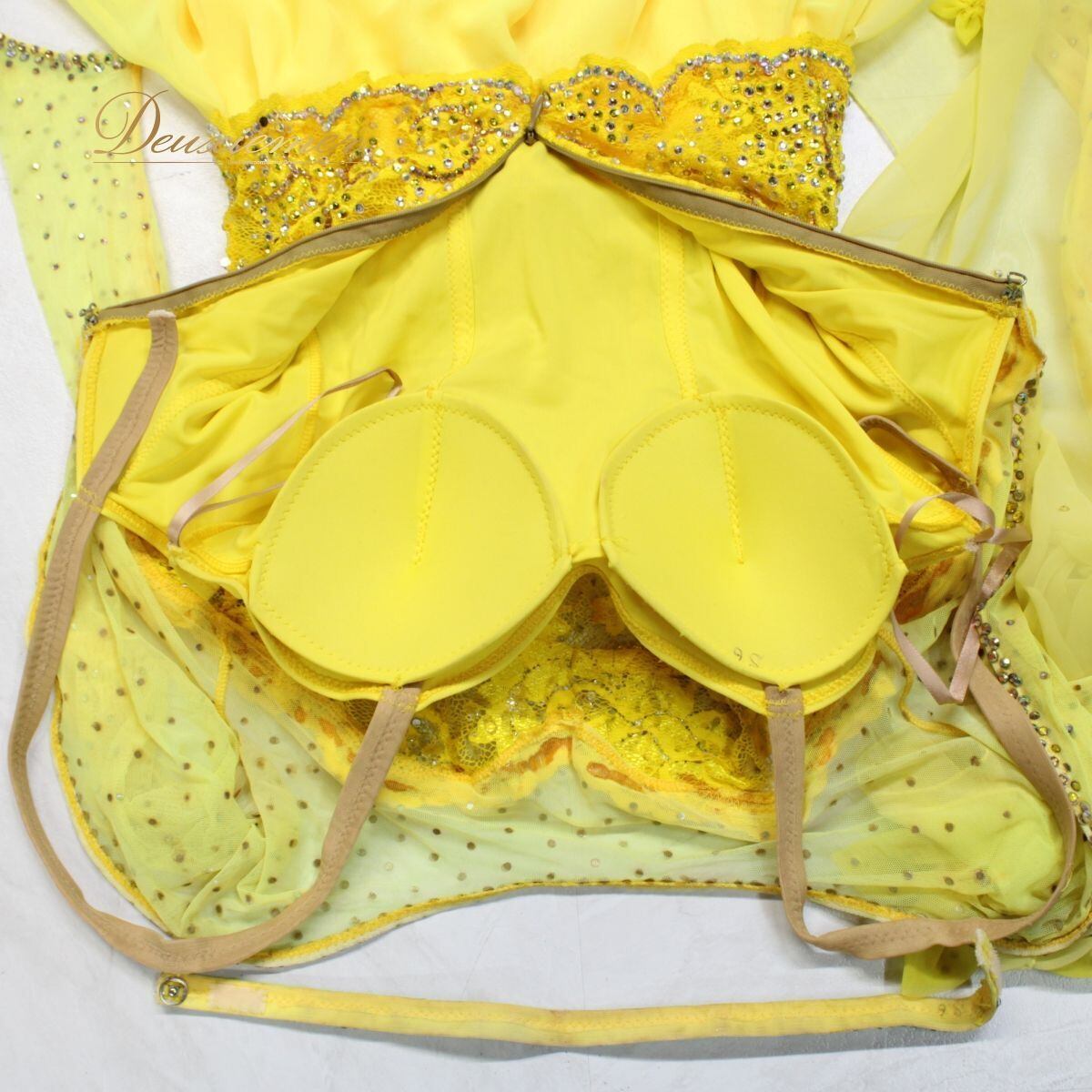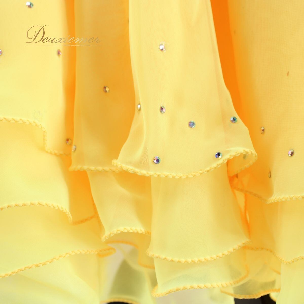 【イギリス製 社交ダンス衣装】イエロー ワンピース ドレス 黄色 フロート レース フリル デモ 競技用 花 パーティ 発表会