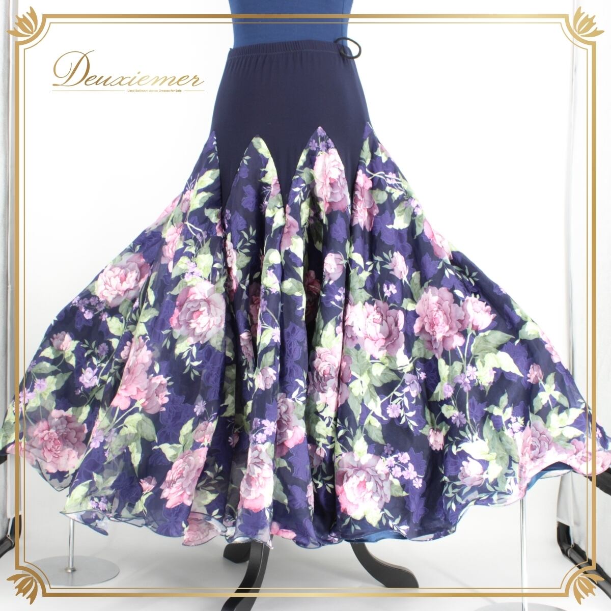 【美品 社交ダンス衣装】スカート レッスンウェア 練習着 紫 薄紫 緑 パープル ライラック グリーン 花柄 ゴージャス かわいい