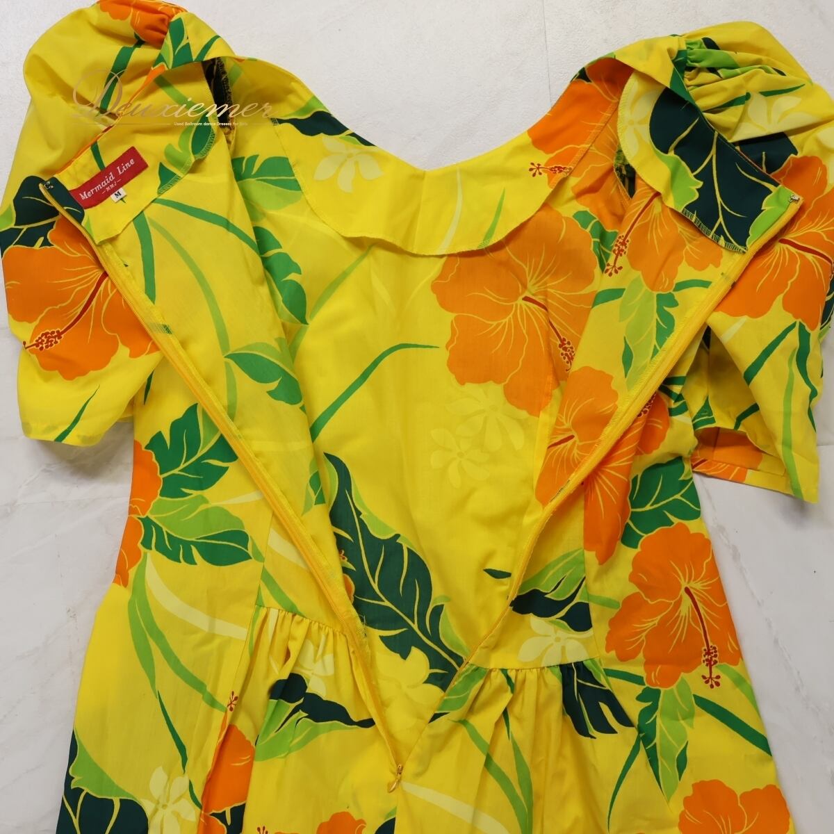 【フラダンス衣装】イエロー MermaidLine MMJ マーメイドライン ワンピース ドレス オレンジ 緑 ティアレ柄 黄 かわいい 花柄
