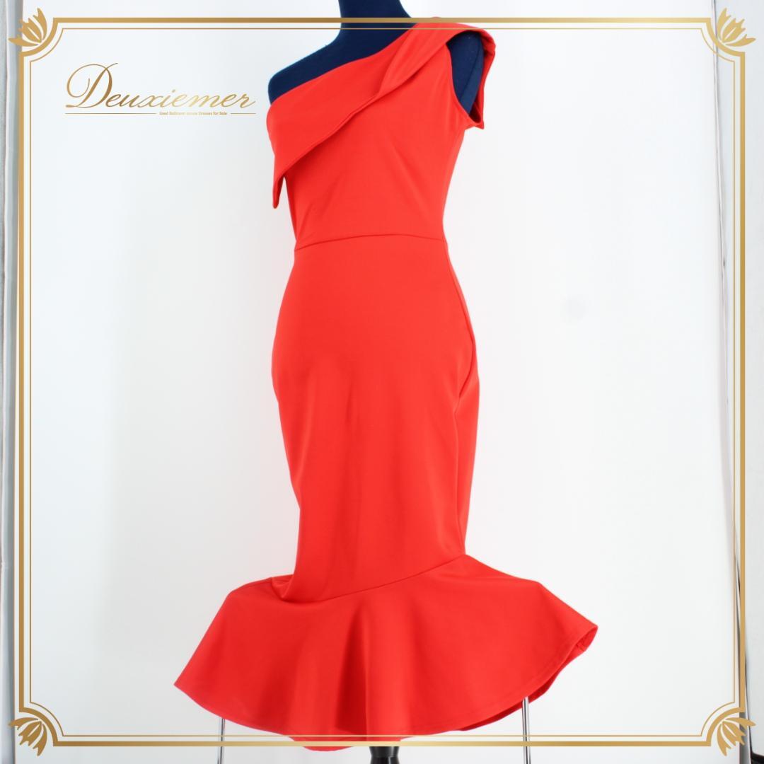 【美品 社交ダンス衣装】ワンピース ドレス 赤 レッド Mサイズ 無地 シンプル ワンショルダー 派手 上品 気品 目立つ かわいい