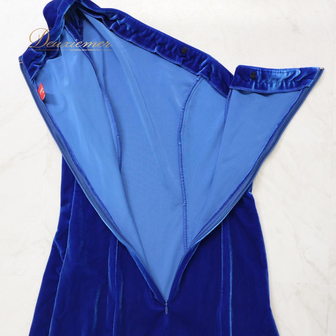 【美品 日本製 フラダンス衣装】ブルー MermaidLine MMJ マーメイドライン ワンピース ドレス ベロア 光沢 青 ワンショルダー