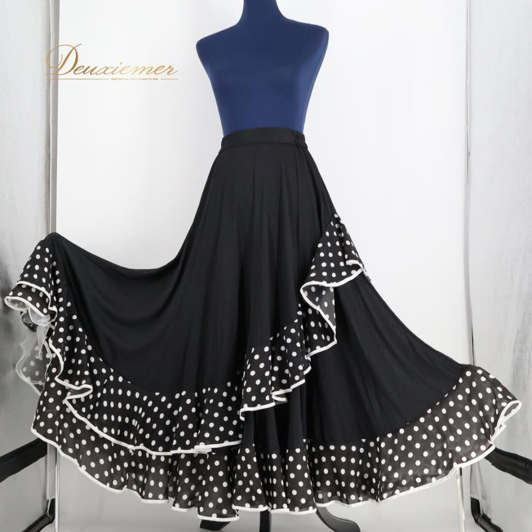 【フラメンコ衣装】ブラック prima boutique プリマブティック ファルダ スカート 黒 ボランテ フリル 白 ドット 水玉 練習着