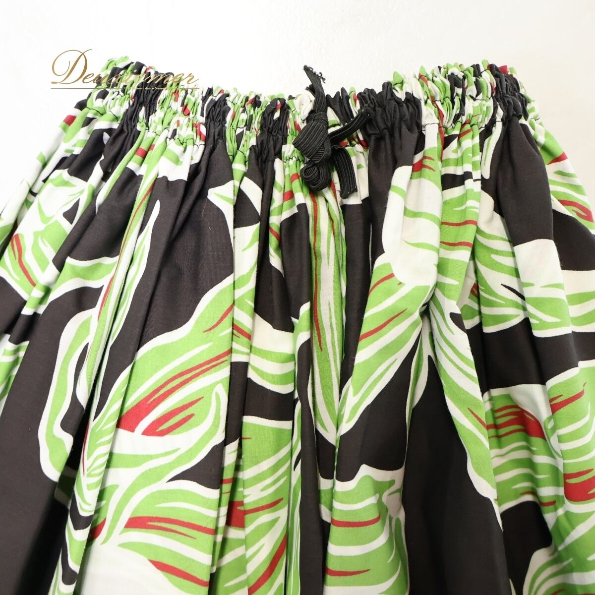 【美品 フラダンス衣装】ブラック パウスカート 黄緑 赤 白 黒 ロング ハワイアンプリント レッド ホワイト 鮮やか かわいい