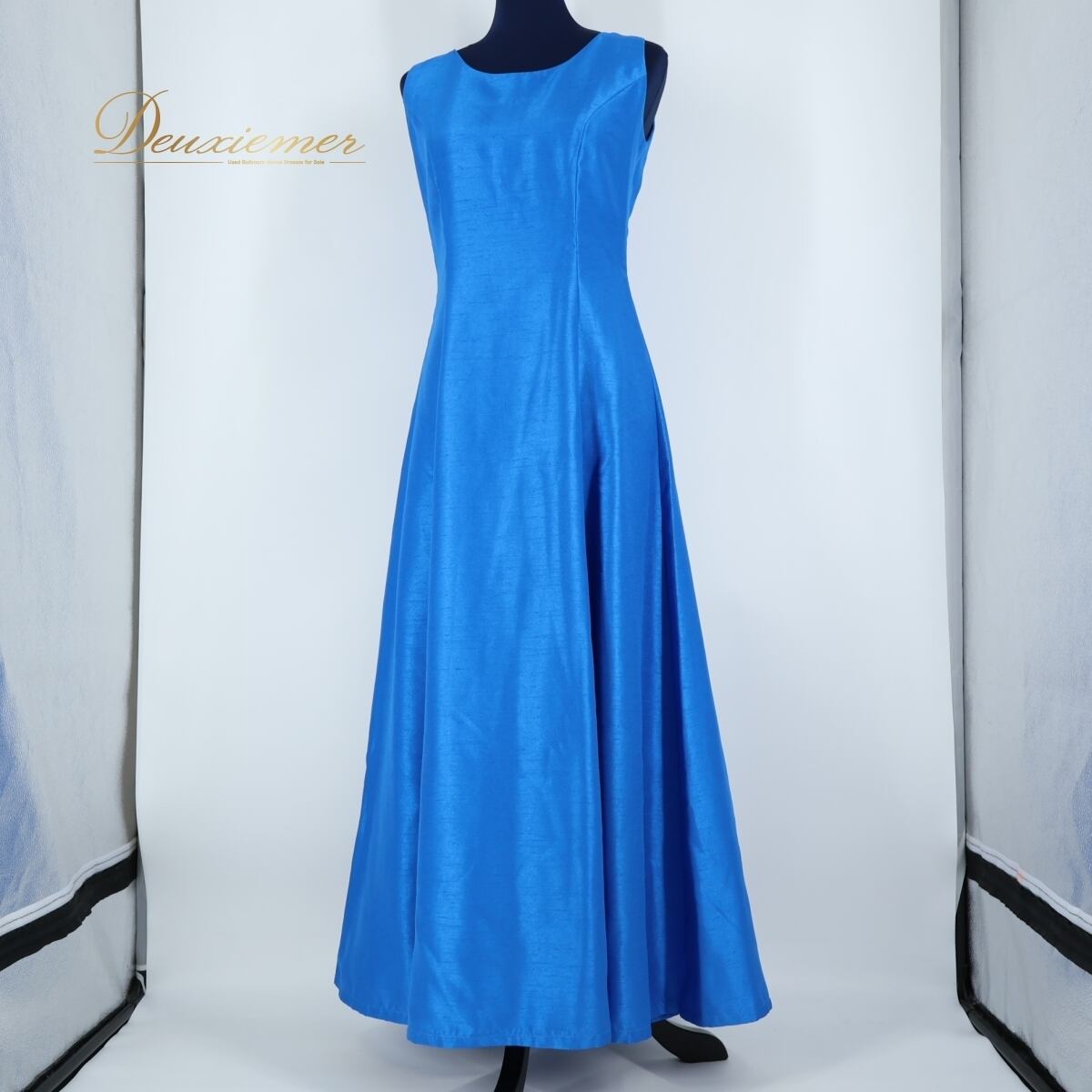 【美品 フラダンス衣装】ブルー ワンピース ドレス 青 光沢 ノースリーブ 袖なし 爽やか 鮮やか 無地 シンプル アロハ 可愛い