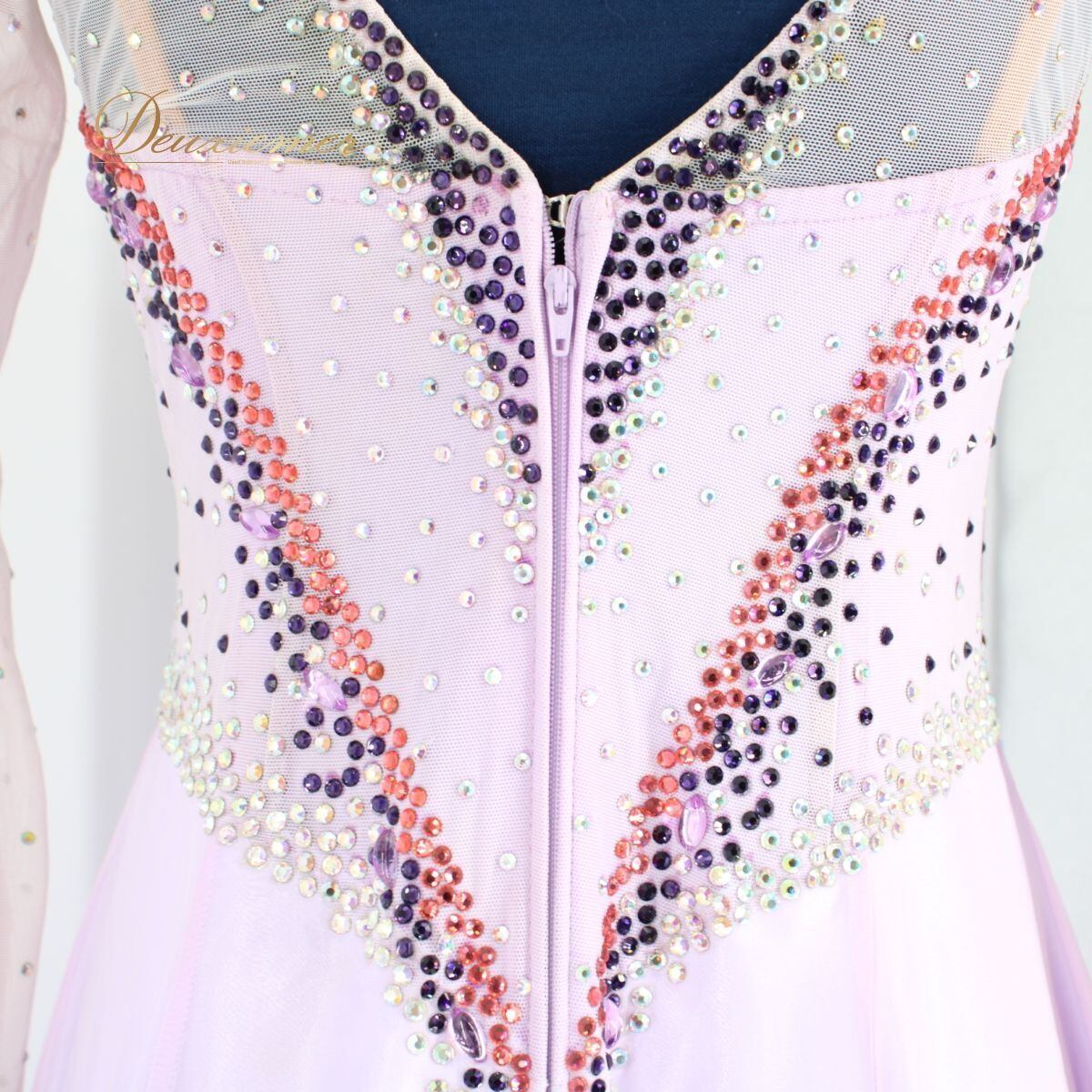 【社交ダンス衣装】パープル ワンピース ドレス 紫 ラベンダー 綺麗 落ち感 デモ 競技用 ラインストーン パーティ 上品 高級感