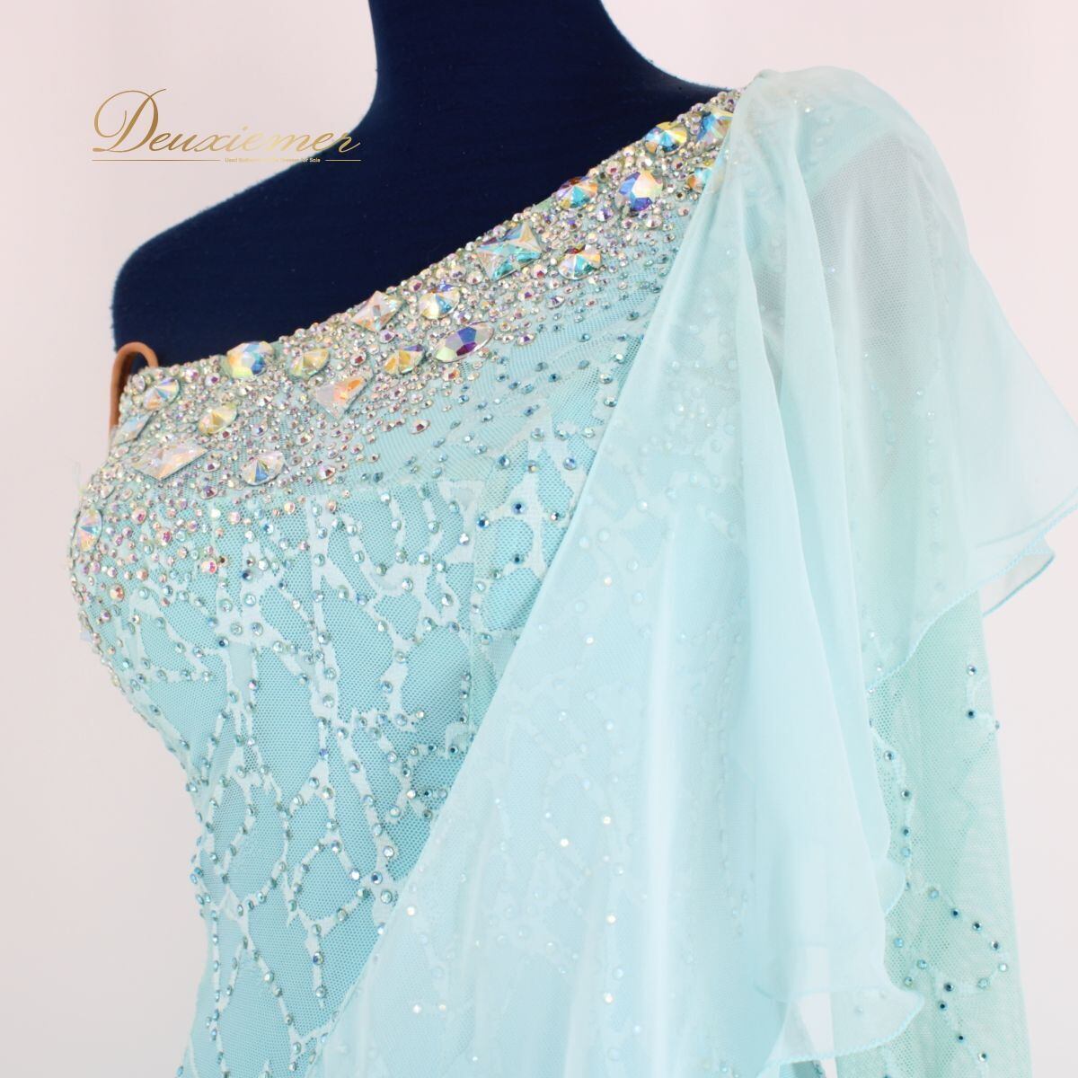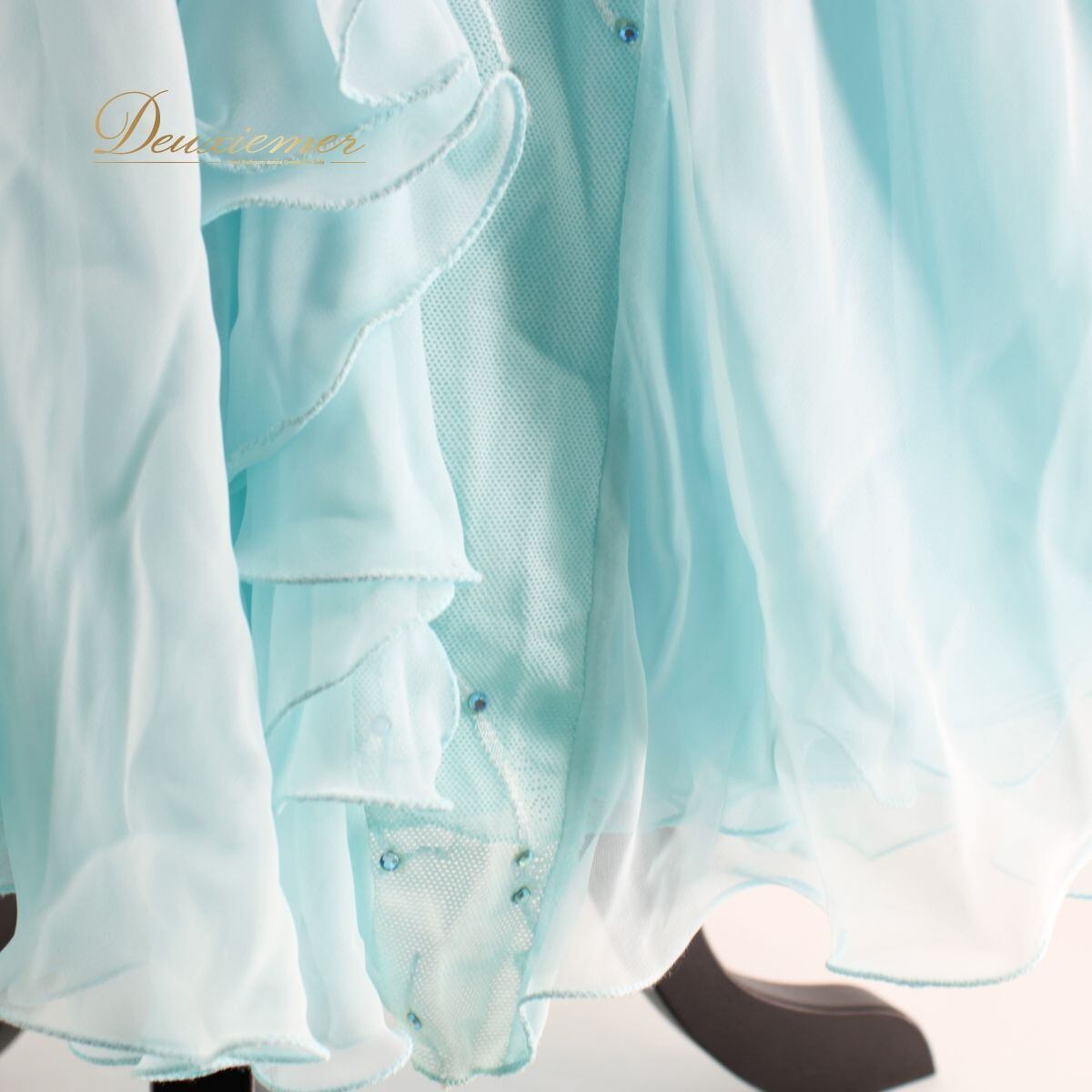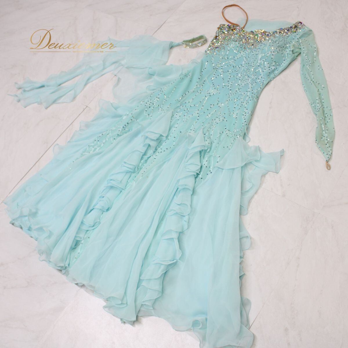 【イングランド製 社交ダンス衣装】ブルー ワンピース ドレス 水色 レース フリル 青 デモ 競技用 発表会 パーティ 綺麗