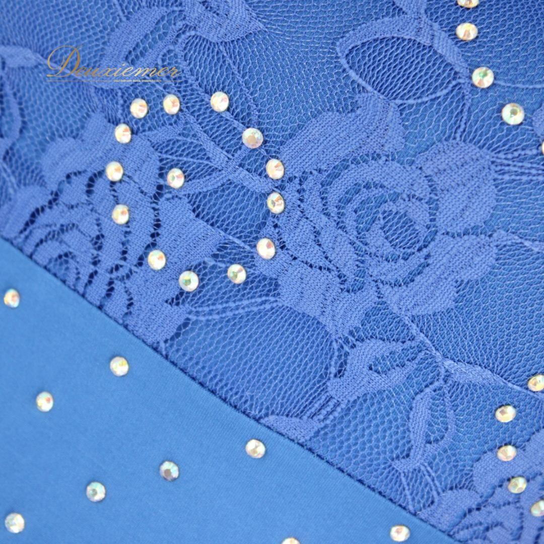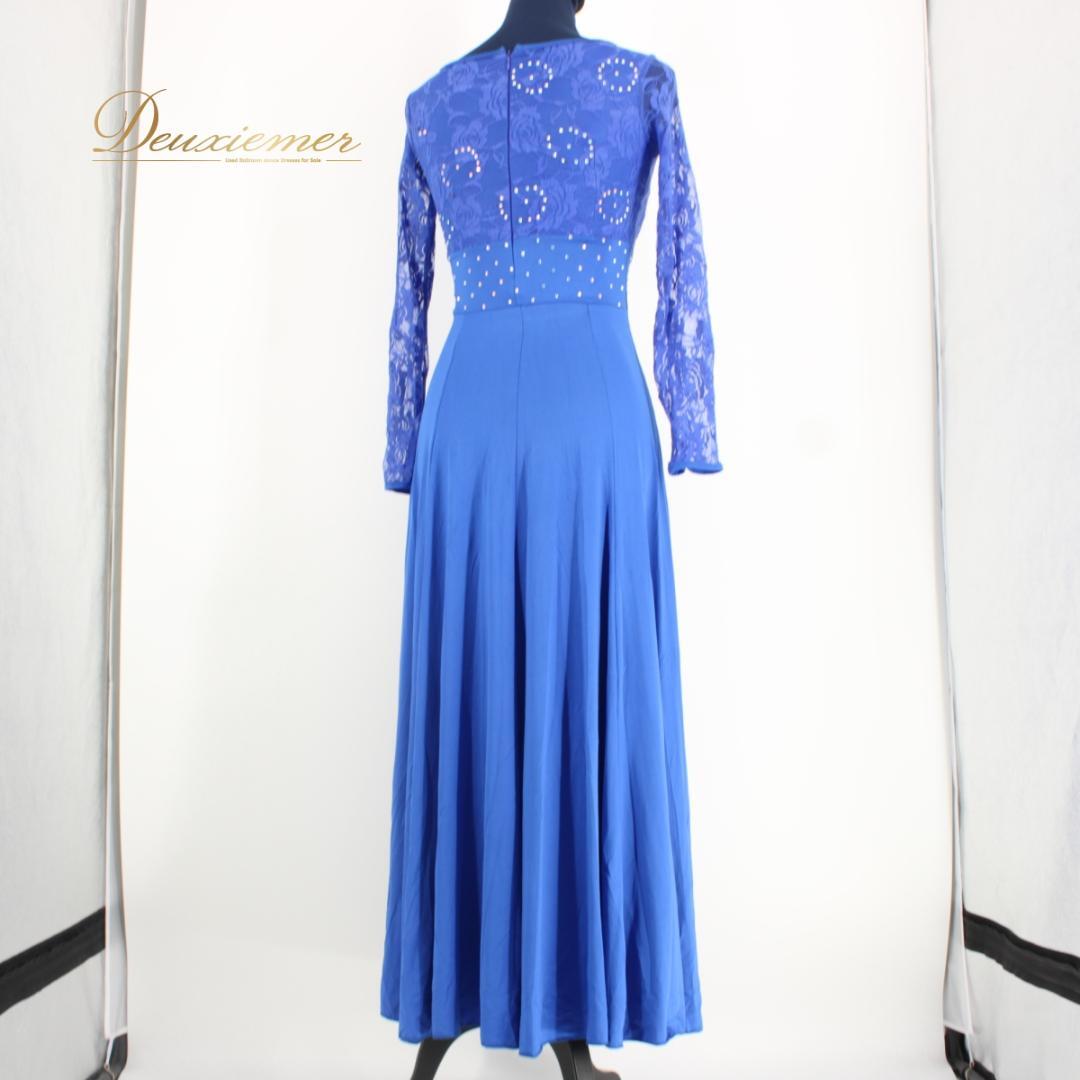 【社交ダンス衣装】ワンピース ドレス 青 ブルー ラインストーン 花柄 レース 豪華 ゴージャス 煌びやか 気品 上品 清楚