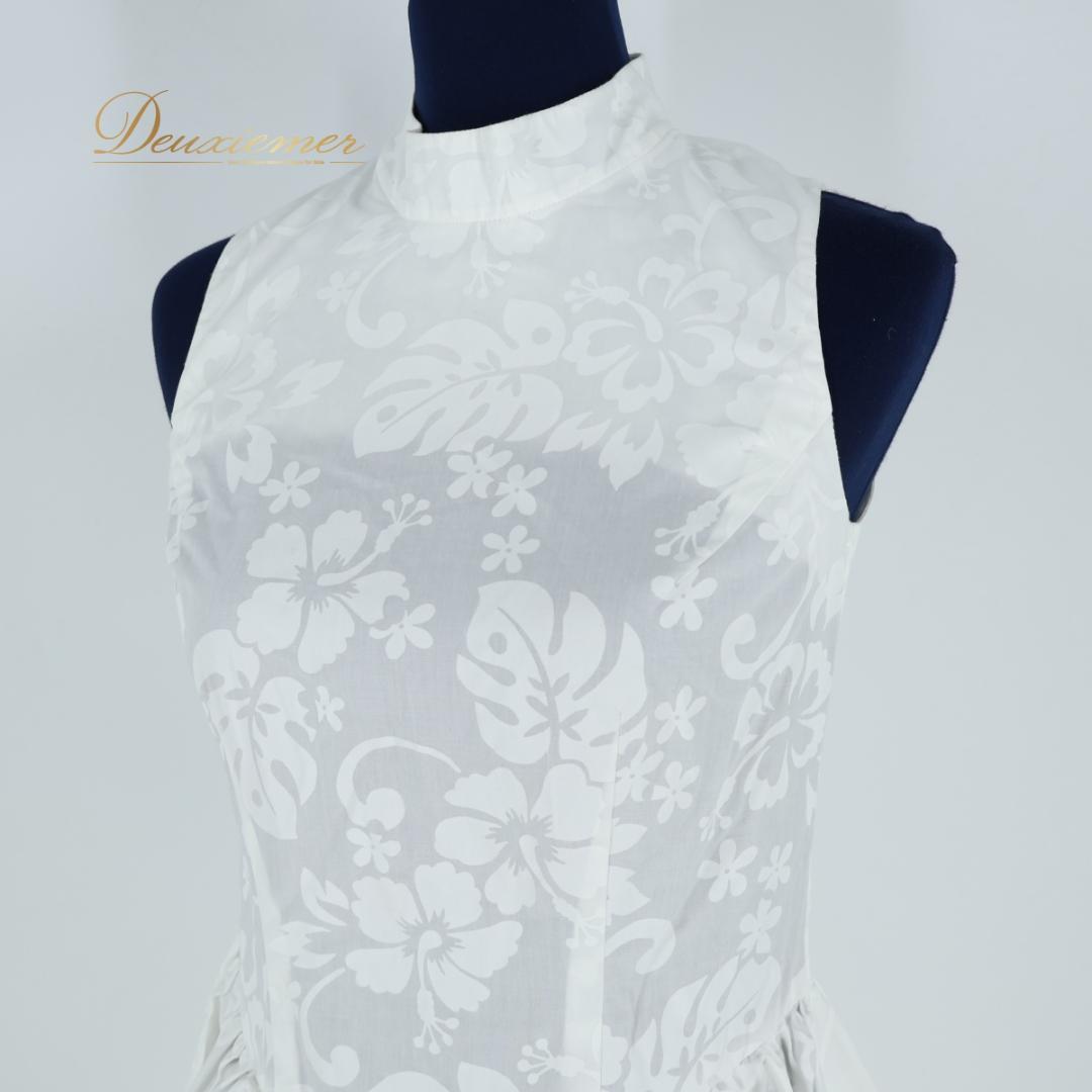 【フラダンス衣装】ホワイト Paondor パンドール ワンピース ドレス ハイビスカス柄 花柄 ノースリーブ 袖なし 爽やか 可愛い