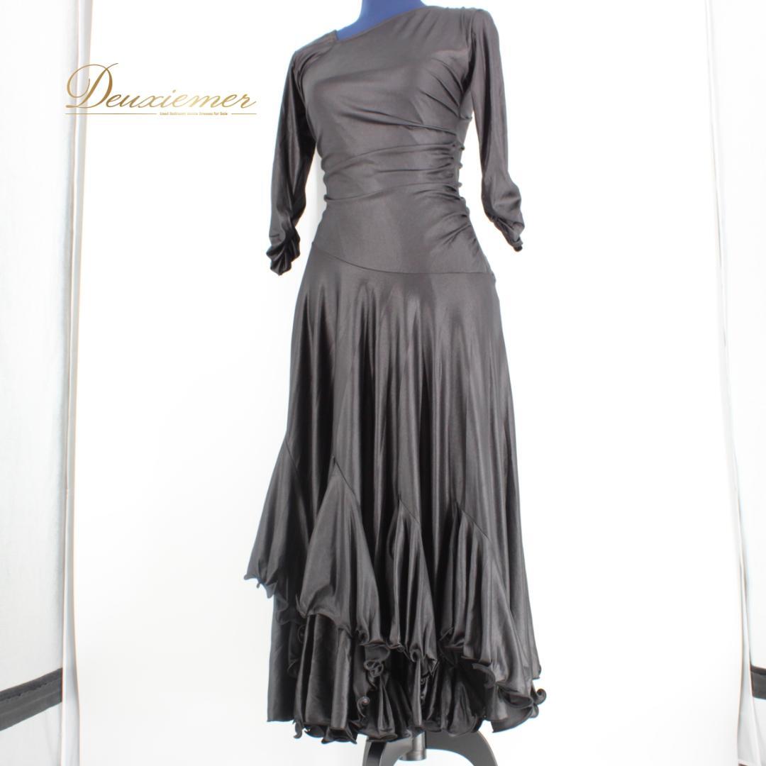 【社交ダンス衣装】ワンピース ドレス 黒 ブラック 無地 光沢感 無地 シンプル ゴージャス 豪華 上品 気品 シック クラシカル
