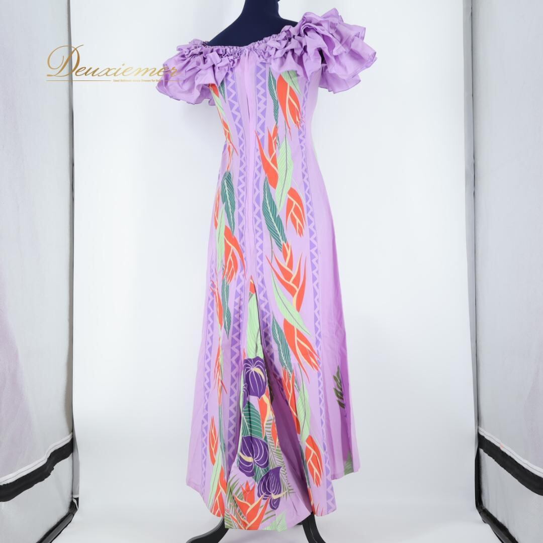 #フラダンス #衣装 #ドレス #ワンピース #淡い紫 #花柄 #フリル #パンドール #特別な日 #ダンス衣装 #ファッション #おしゃれ #女性用 #スポーツウェア #夏のコーデ #パーティー #イベント #ステージ衣装 #レディースファッション #ENUTSU