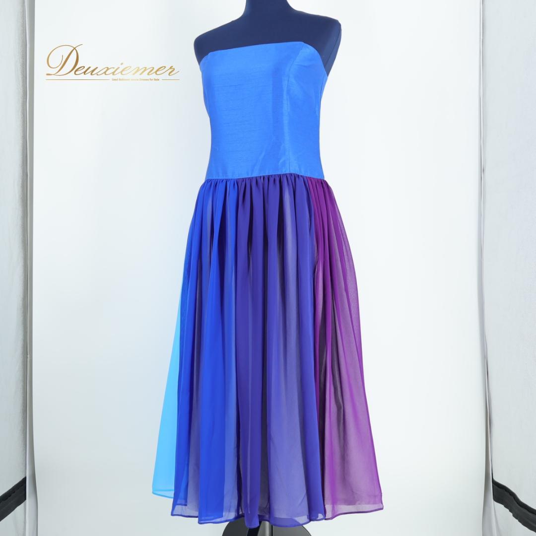 【美品 日本製 フラダンス衣装】ブルー ALOHA STANDARDS アロハスタンダード ワンピース ドレス 青 紫 水色 チューブトップ