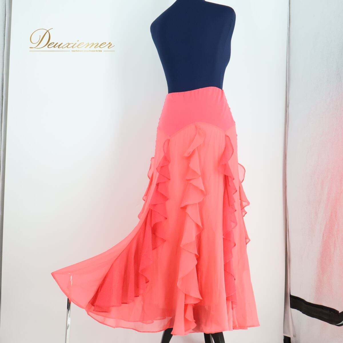 【社交ダンス衣装】ピンク create-sun クリエイトサン スカート サーモンピンク フリル レース 伸縮 レッスン 無地 パーティ